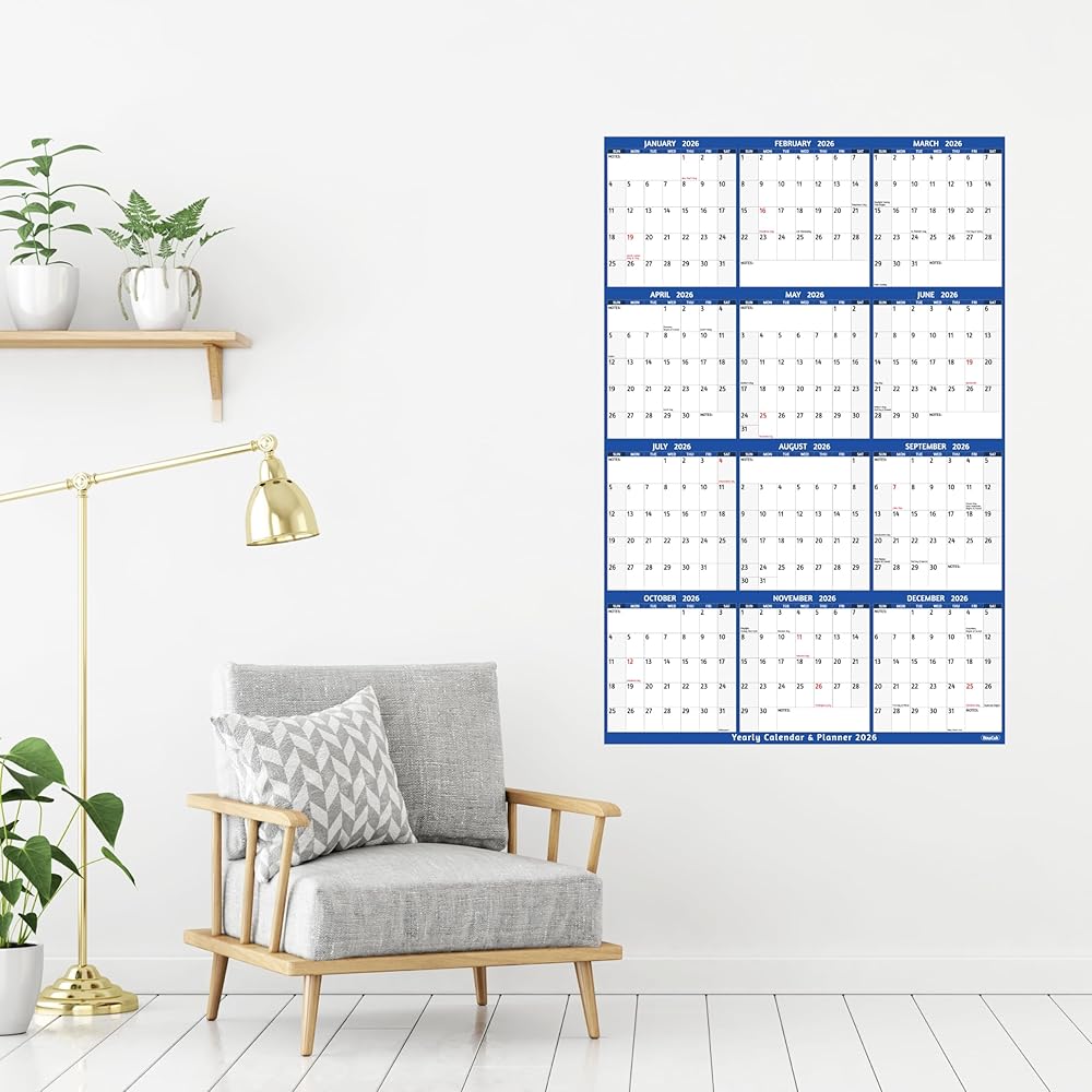🌺 تقويم الحائط 2025-2026 - يناير 2025 - يونيو 2026 (12 بوصة × 17 بوصة)، يغطي تقويم الحائط هذا 2025-2026 تقويمًا رأسيًا لمدة 18 شهرًا من أجل تخطيط أسهل على مدار العام. خطط للمستقبل وقم بإدارة حياتك بشكل أكثر كفاءة مع هذا التقويم الشهري الـ 18!
