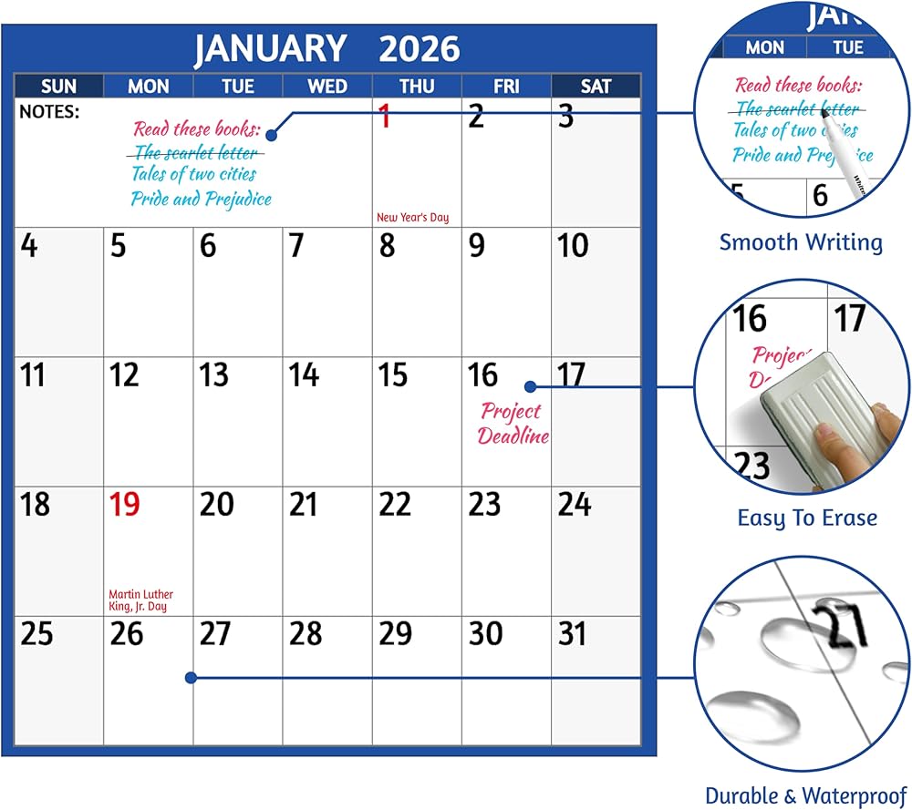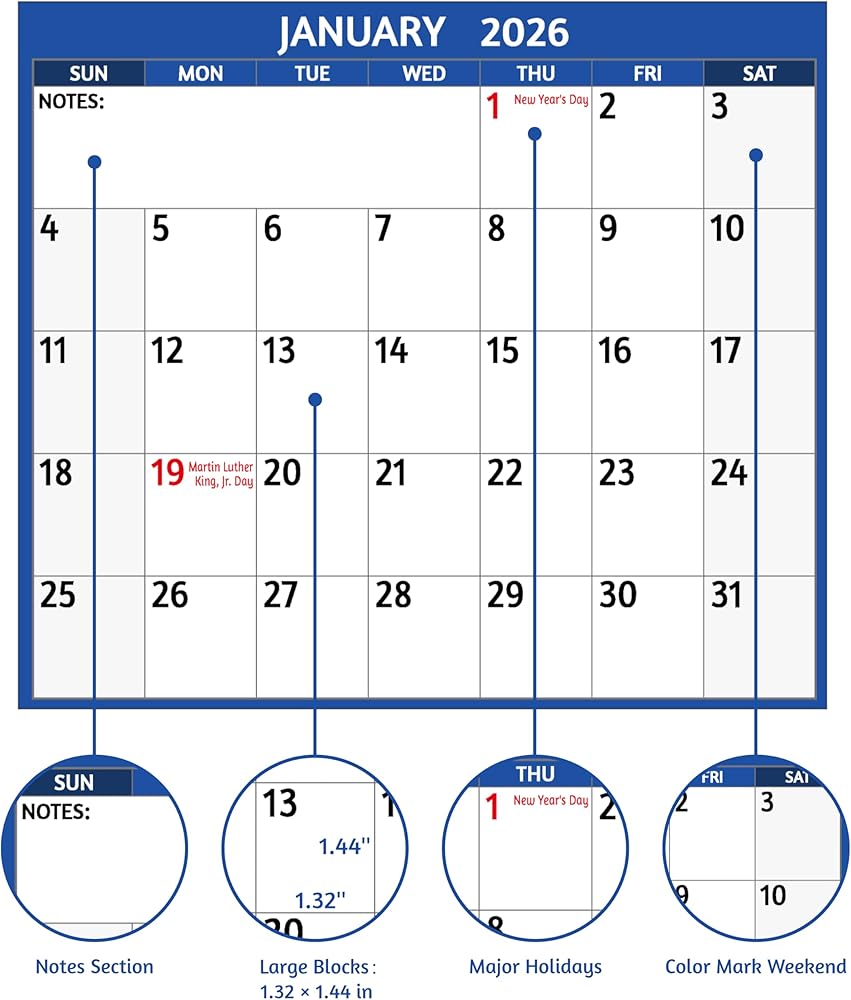 🌺 مساحة كتابة واسعة - يتميز جدار التقويم 2025-2026 هذا بأولويات عليا وقوائم المهام وقسم الملاحظات في كل شهر لتدوين الأجندة المهمة وكل موعد نهائي والمناسبات الخاصة والاجتماعات والمواعيد وما إلى ذلك. تم تضمين مرجعين للتقويم.