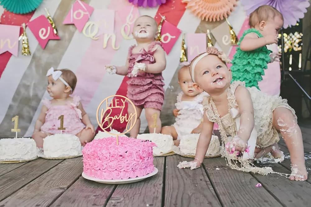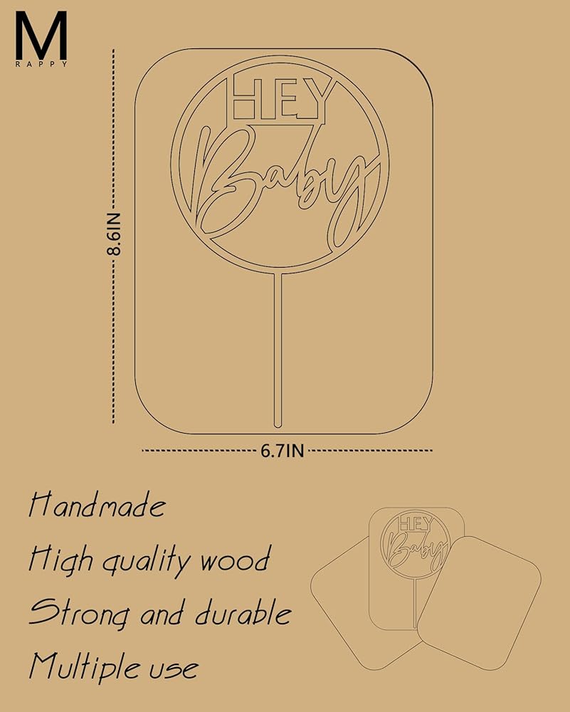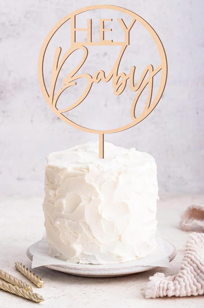 قطعة علوية للكيك من Hey Baby - لوازم تزيين الكيك الخشبية لحفلات الكشف عن جنس الطفل، مثالية لهدايا استحمام الطفل الصبي، أو الكشف عن جنس الطفل أو دعامات كشك الصور (لون الخشب)