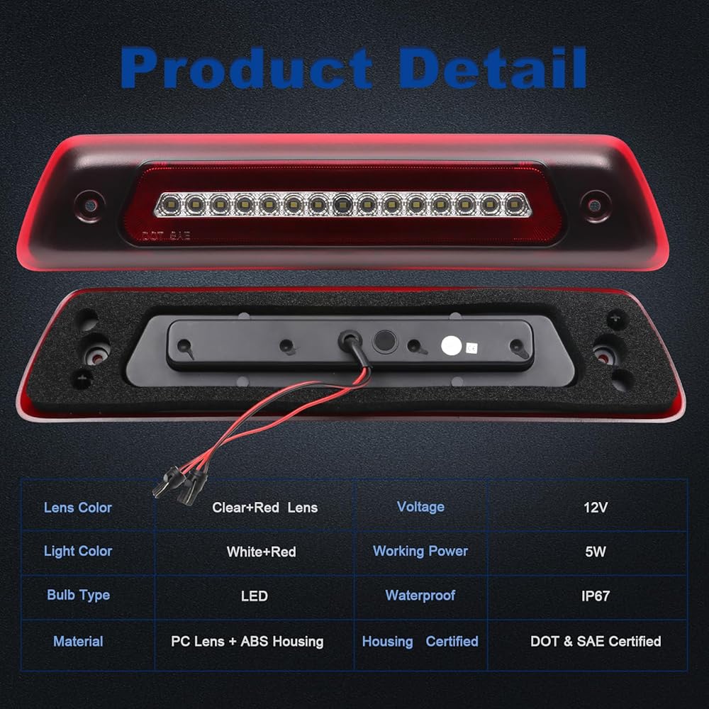 متوافق مع: مصباح الفرامل LED الثالث يناسب F150 1994-1996/ F250 1994-1996/ F350 1994-1997/ برونكو 1992-1996؛ استبدال رقم الجزء OEM: F4TZ-13A613-A،F4TZ13A613A