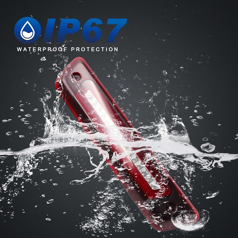 【تصميم مقاوم للماء】مصباح الفرامل الثالث LED HTZCMOTO مصنوع من مادة أكريلونتريل بوتادين ستايرين، والجزء الخلفي مثبت بإسفنج عالي الكثافة، والذي يمكن أن يمنع تسرب الماء والثلج أو المطر الغزير ويحمي سيارتك.