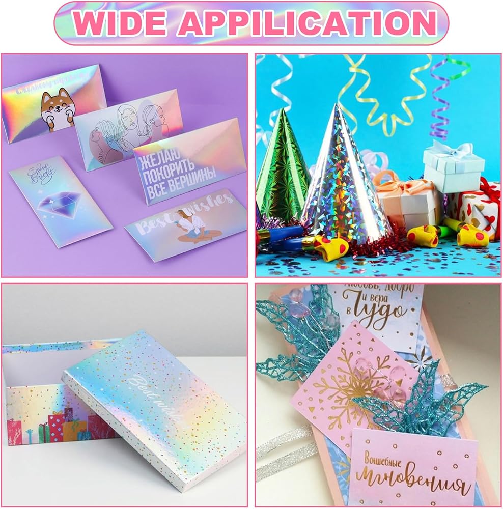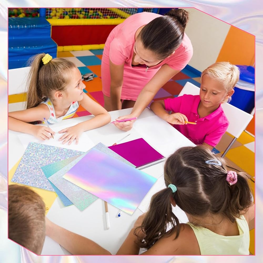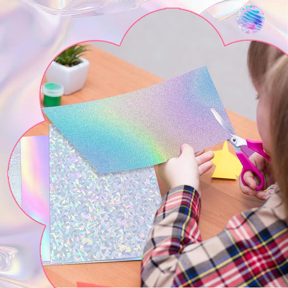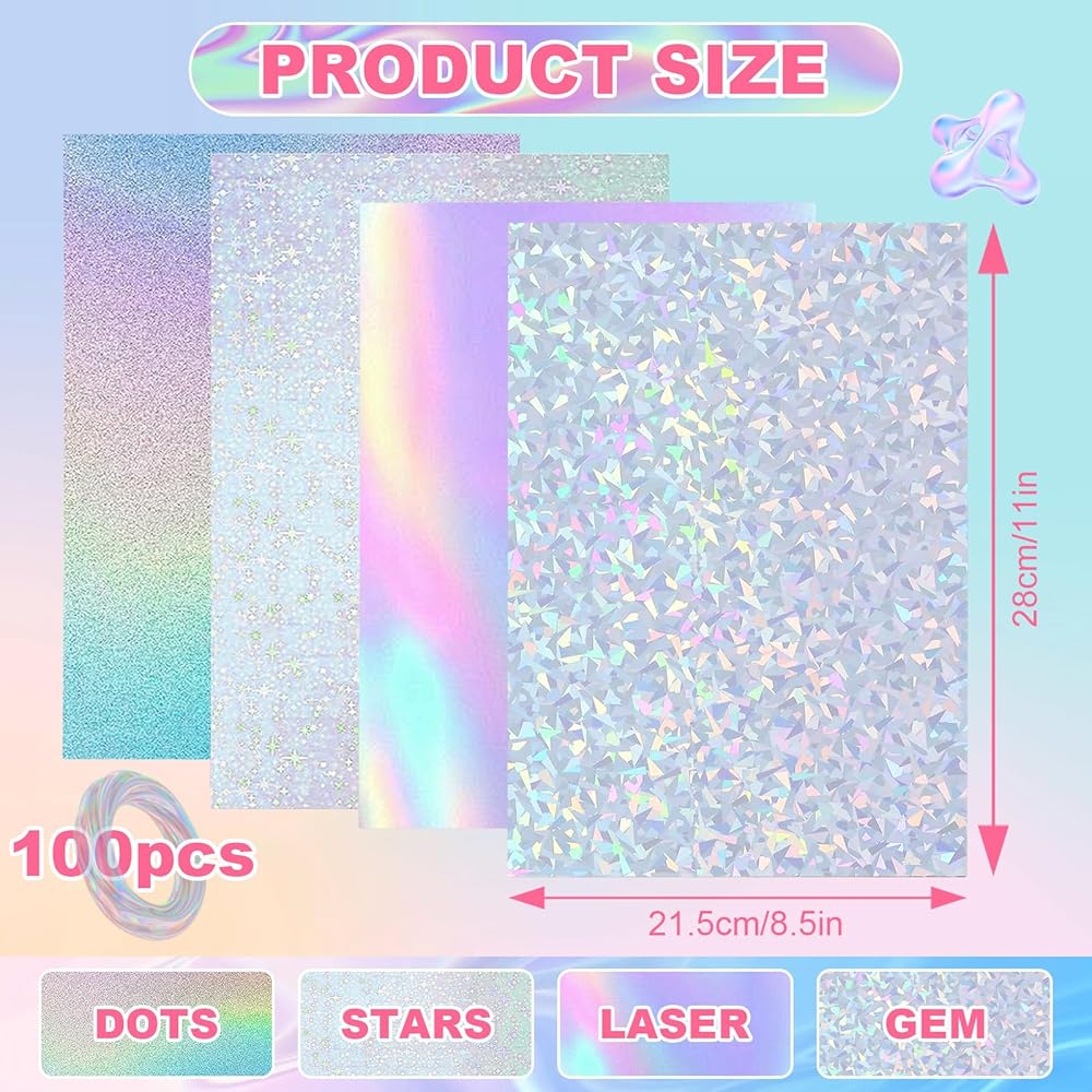 - 100 holographic paper, the front is colorful metallic color and the back is white, suitable for many cases.