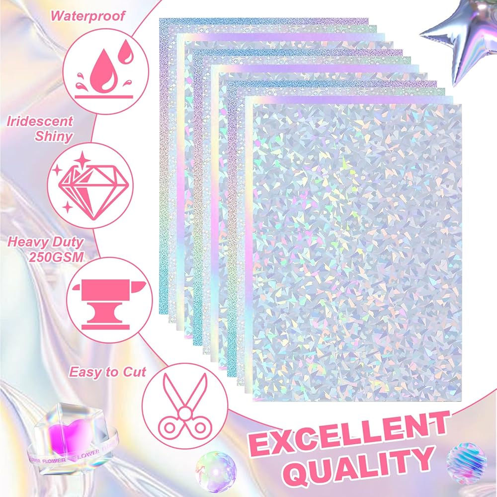 ABuff 100 Sheets Holographic Cardstock 8.5 x 11, 250gsm/92lb Metallic Cardstock Glitter Shiny Iridescent Mirror Paper Thick Card Stock Paper for Crafts, Card Making, Party Decoration, Scrapbook Supplies