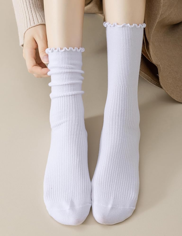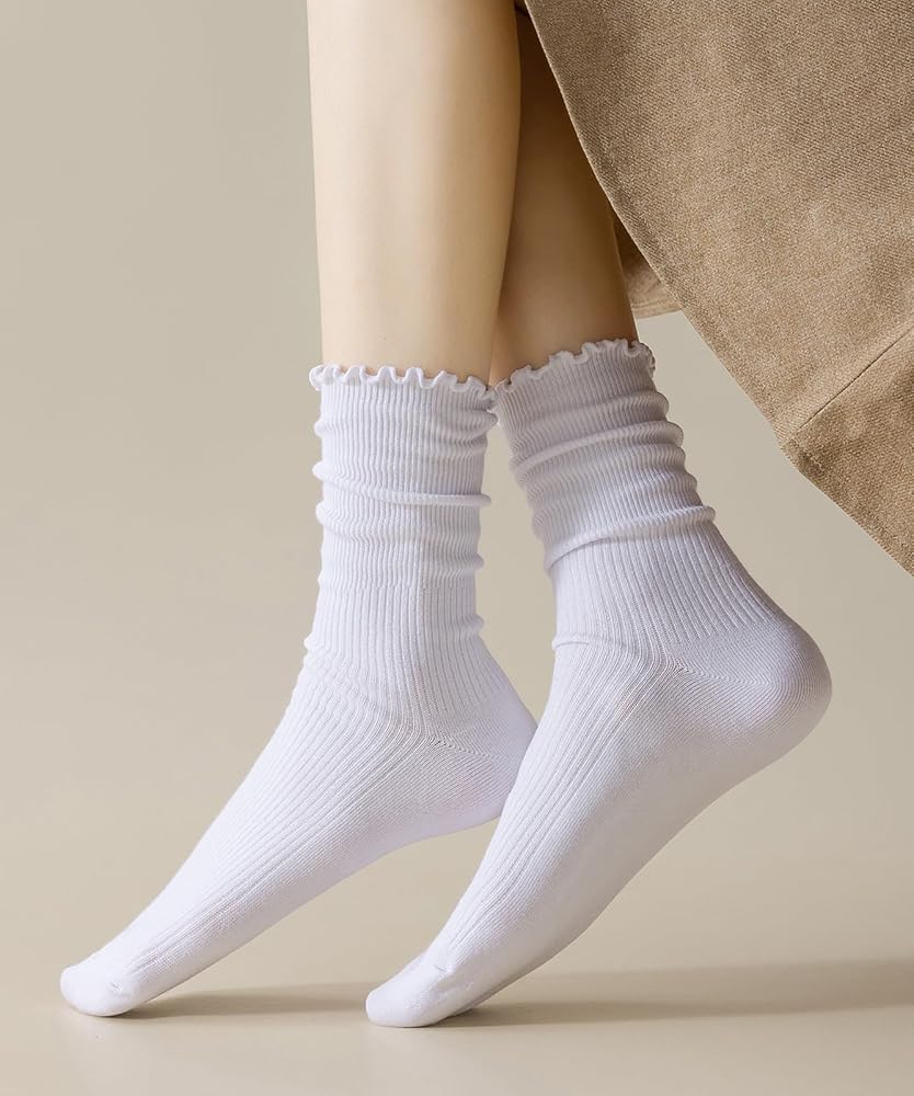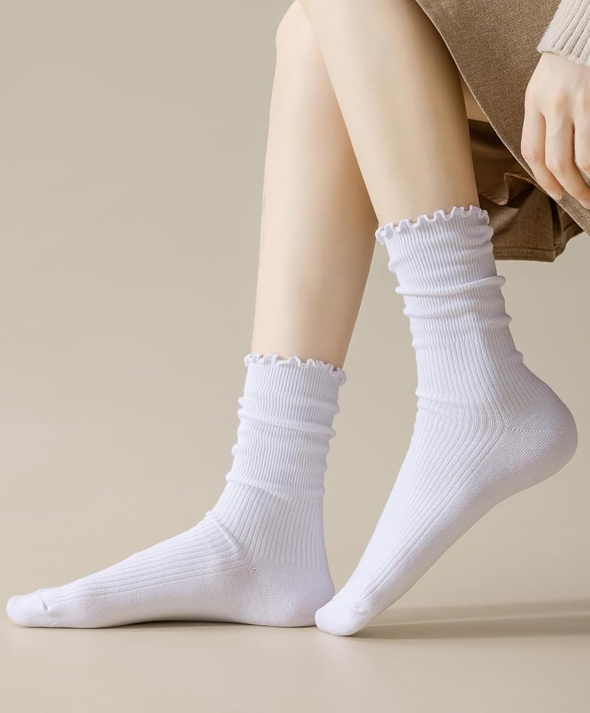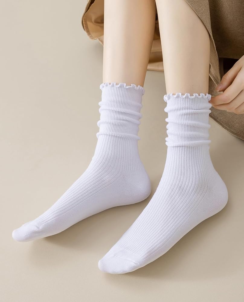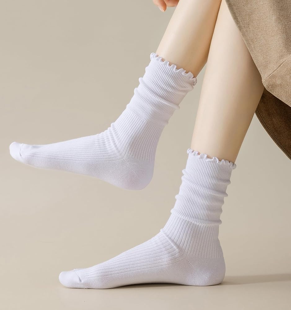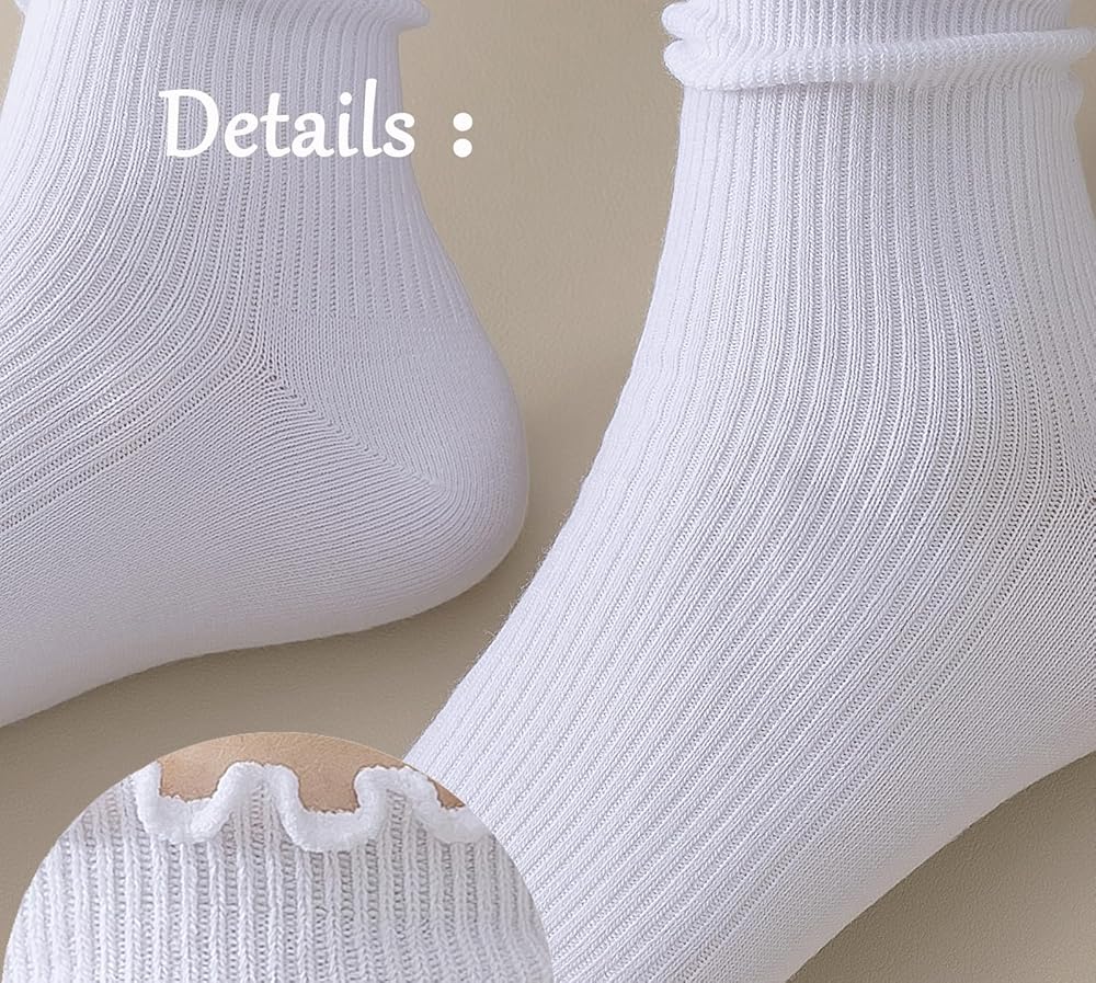 جوارب مكشكشة باللون الأبيض الحقيقي هي مزيج مثالي من الأناقة والراحة. يضيف التصميم المكشكش الرائع لمسة من الجاذبية والمرح إلى أي ملابس، مما يجعلها مثالية للنساء اللاتي يبحثن عن جوارب لطيفة وعصرية. كما يمنحهم تصميم حافة الخس لمسة مرحة، ويلتقط المزيد من الرؤية، ويطلق العنان لسحرك، ويجعلك تشعرين بشعور لطيف للغاية، ويجعلك تشعرين "بأنثوية".