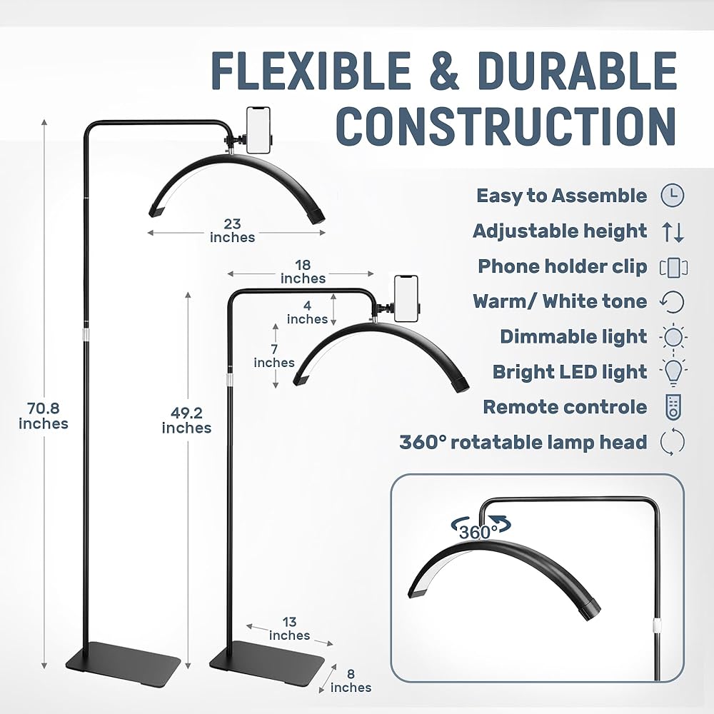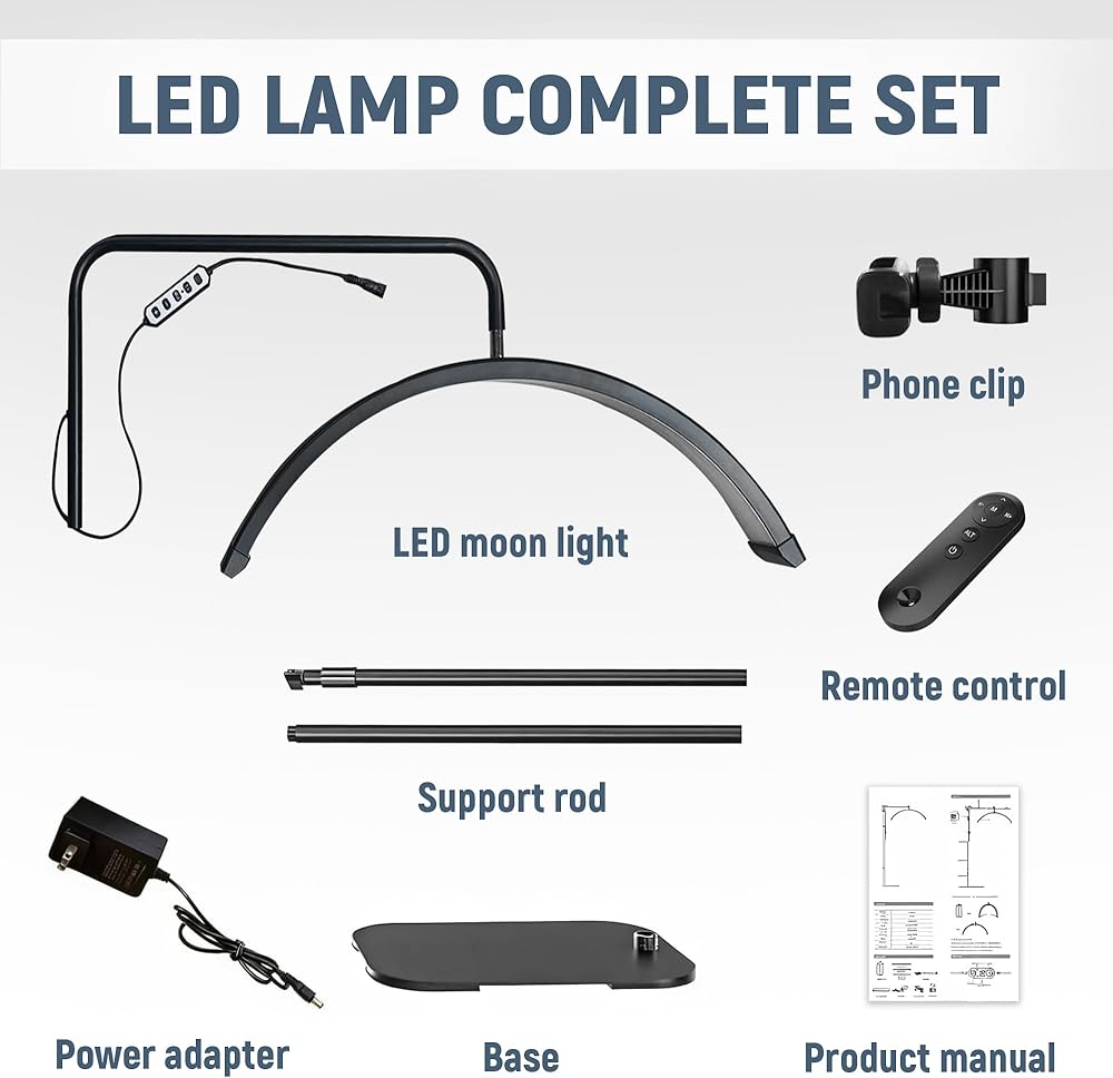 This Half moon led lamp provides the ideal lighting for lash artists, makeup studios, salons, study, spa, beauty and even for home use. Enhance your work quality with our precise illumination that brings out the finest details for a flawless finish.The aesthetic LED light has a 360° rotatable lamp head for wide, shadow-free illumination and a solid base that prevents the lamp from falling off. Easy-Install Floor Light - Designed for easy installation, no tools requires, just need to rotate the poles to install. Wherever you're working or whatever your setup is like, this eye lash lamp's height-adjustable stand will offers versatility.