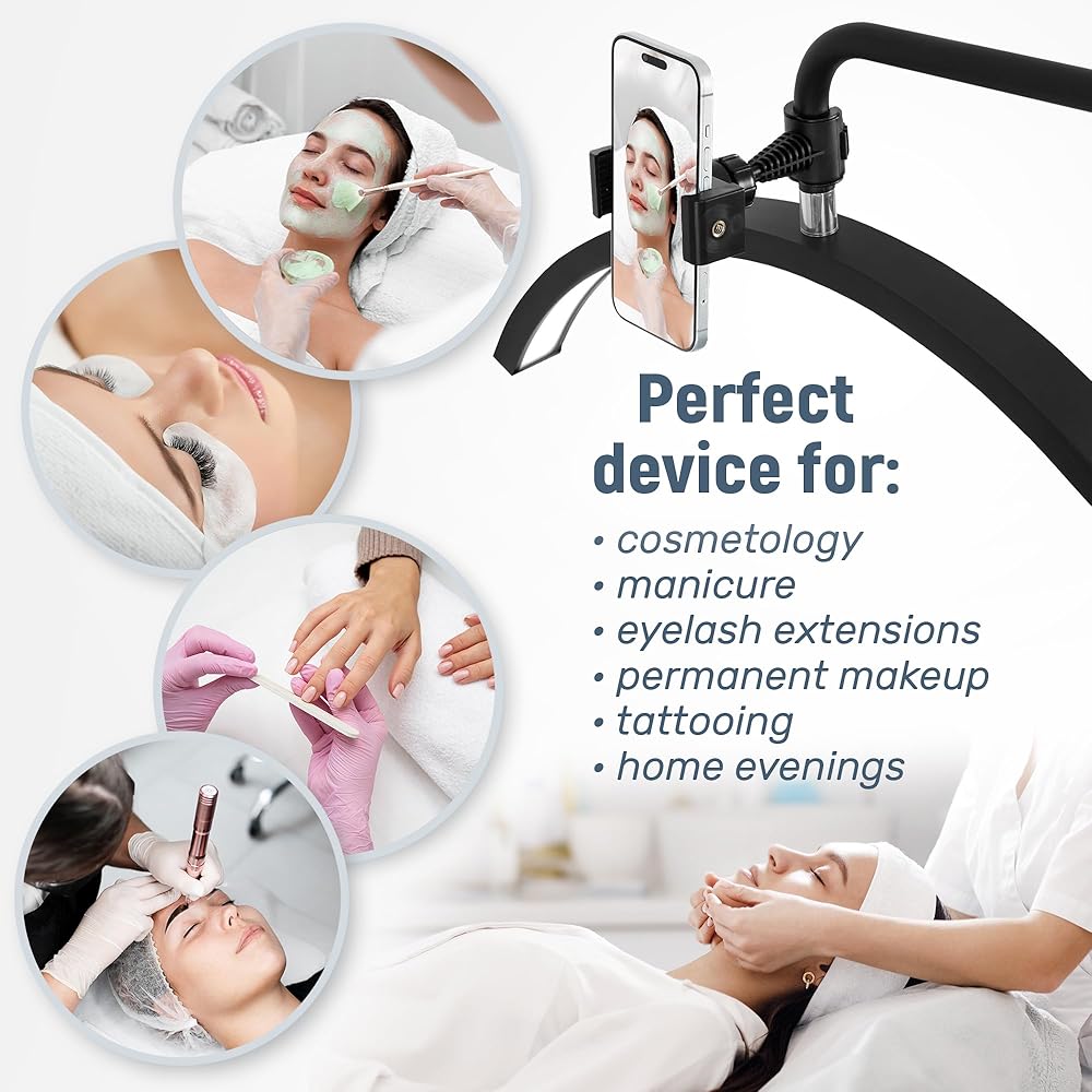 Lash Tech Light Inclusions - Our lash extension light comes with a phone holder clip for hands-free filming or live streaming, plus a 110V power corder. You can simply attach your mobile device to the removable cell phone holder clip and use it.