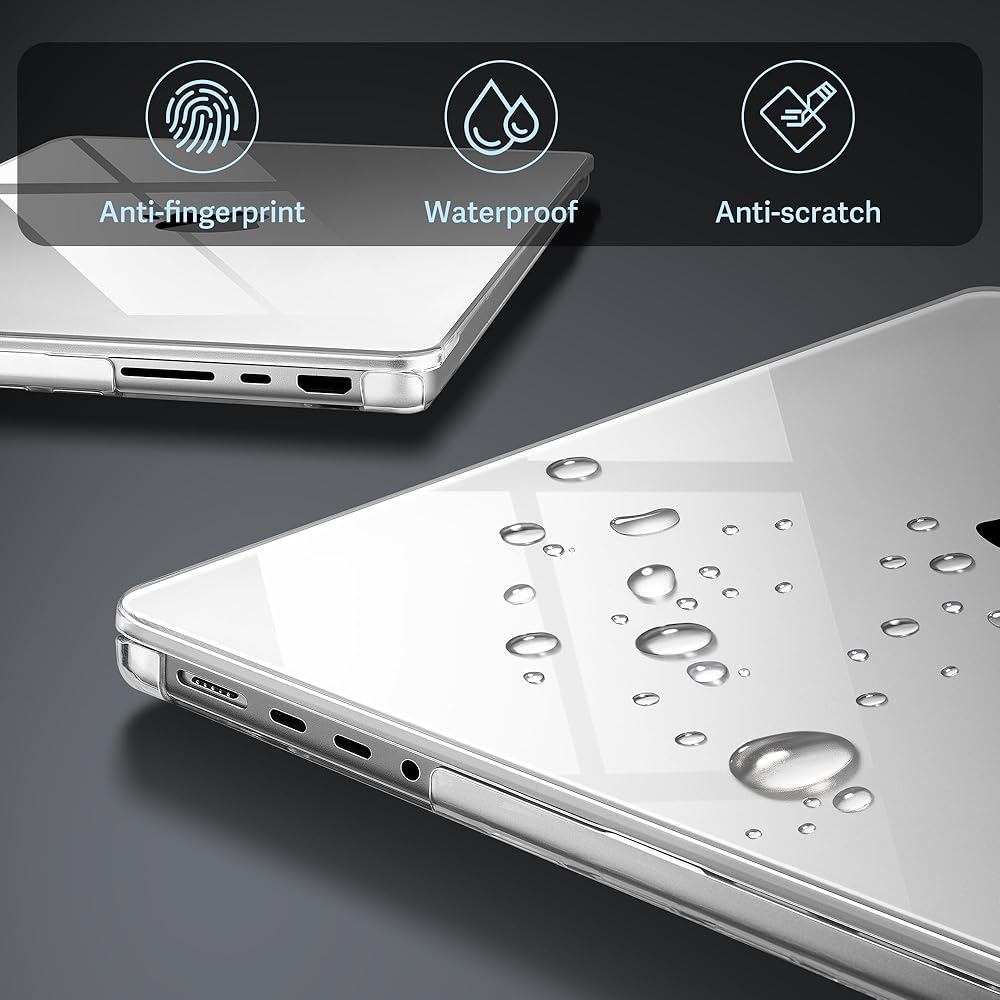 حافظة M4/M3/ M2 /M1 Macbook Pro14 بوصة: تم تشكيل هذه الحافظة وفقًا لجهاز Macbook الأصلي باستخدام تقنية القطع الدقيقة ثلاثية الأبعاد. إنه ملائم تمامًا كطبقة ثانية ويحافظ على تصميمه النحيف ويضمن شفافية نقية بنسبة 100%، مما يسمح لجهاز MacBook الخاص بك بالتألق بشكل رائع بألوانه الأصلية، وحماية شاملة، وجديد يدوم طويلاً، وسهولة الوصول إلى جميع المنافذ، وفتح وإغلاق سلس.