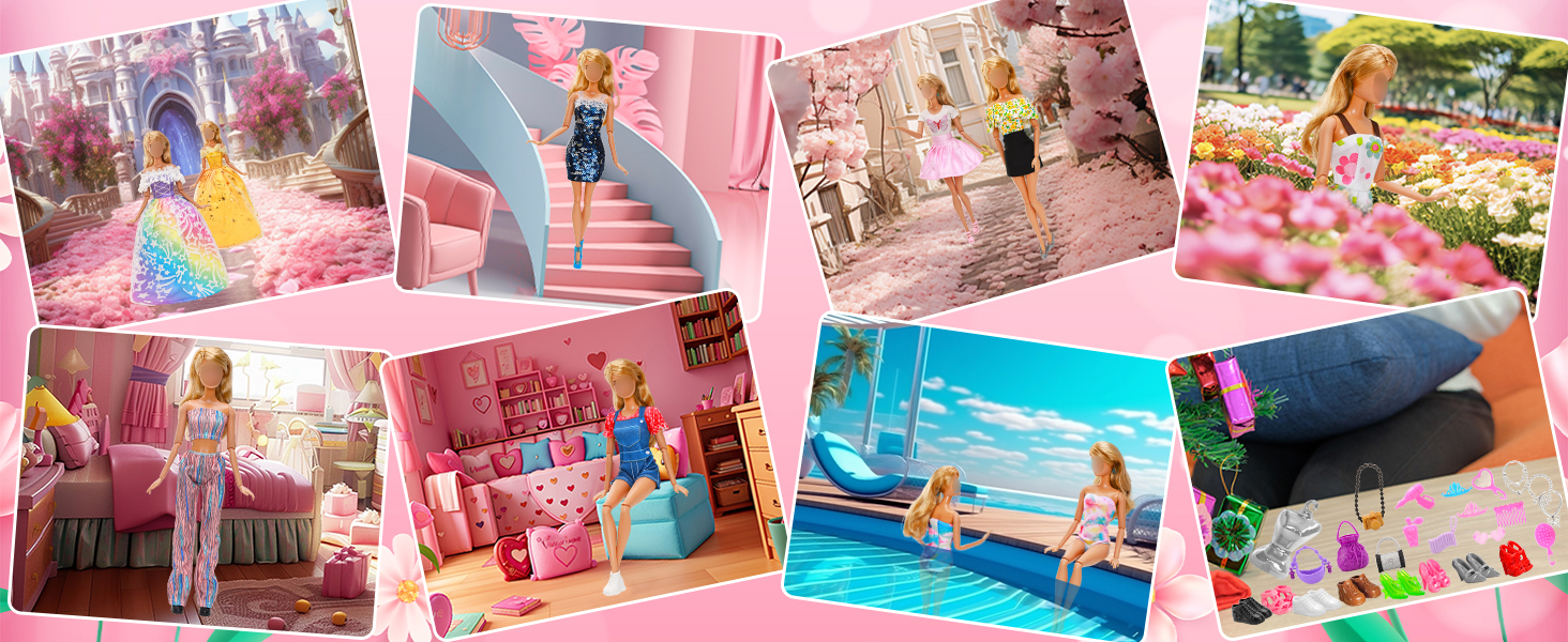 ملابس وإكسسوارات فريدة من نوعها - تتضمن أجنحة الأميرات مع فساتين الزفاف، وفساتين الموضة، وأطقم القمصان والسراويل العصرية. وبالإضافة إلى إكسسوارات الحياة اليومية، والألوان المتنوعة من الكعب العالي، والحقائب، والنظارات، والشماعات على شكل فيونكة، فإن الكاميرا المميزة.