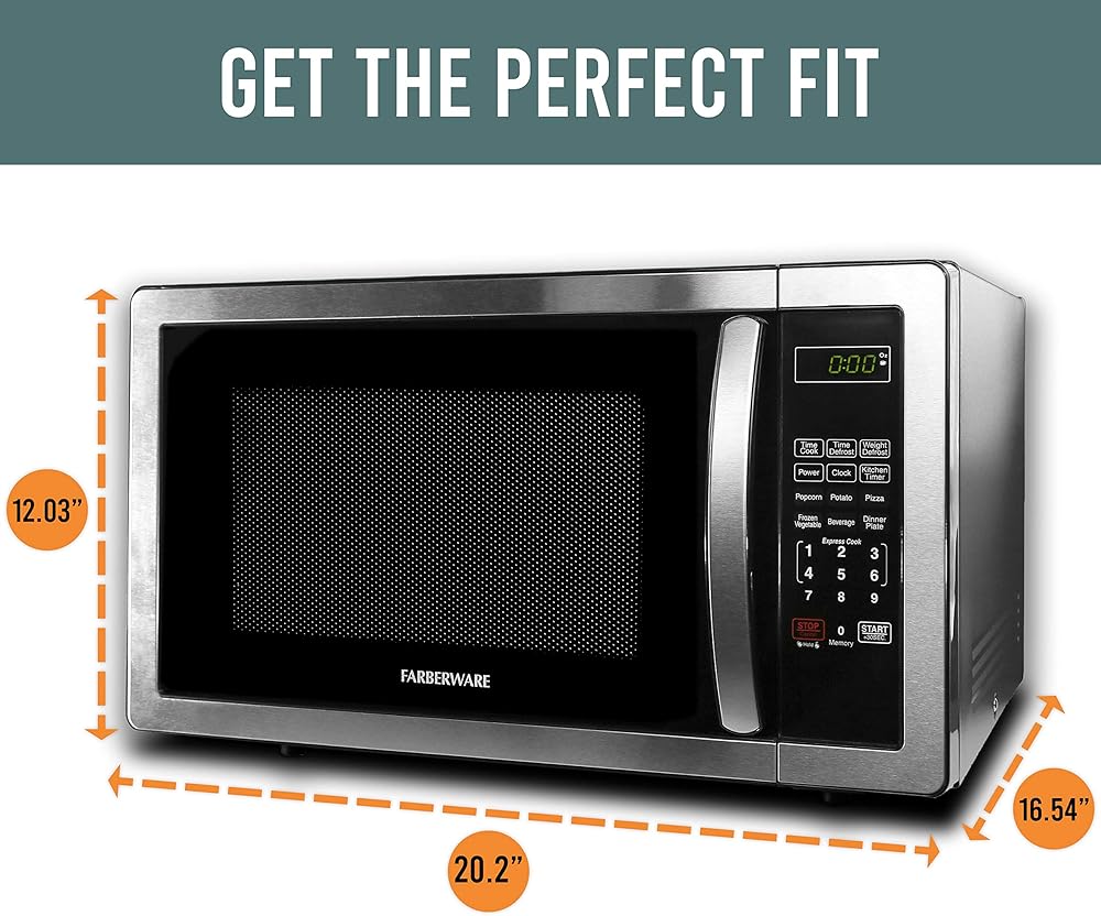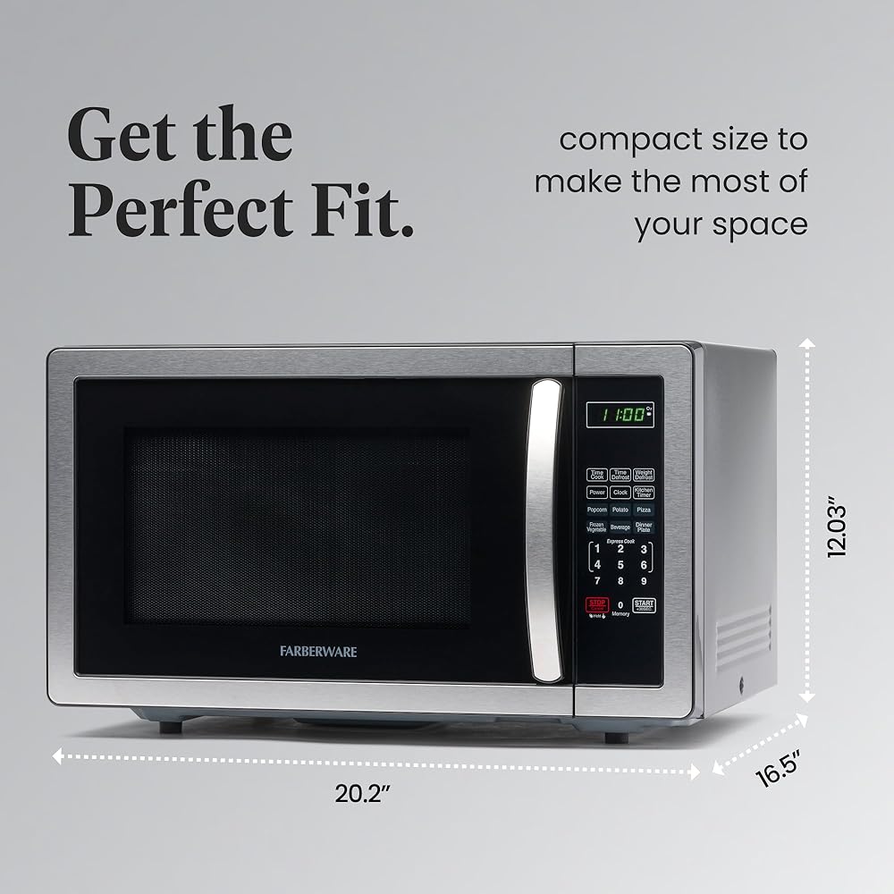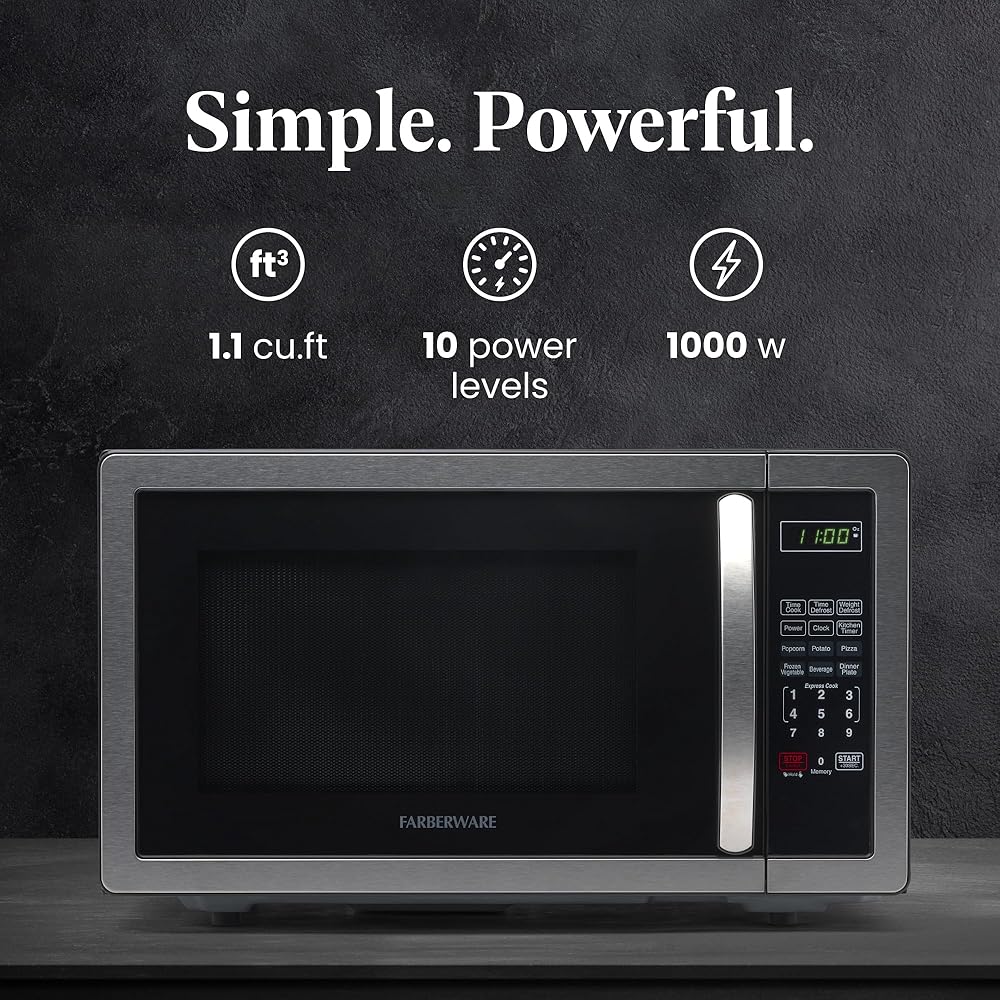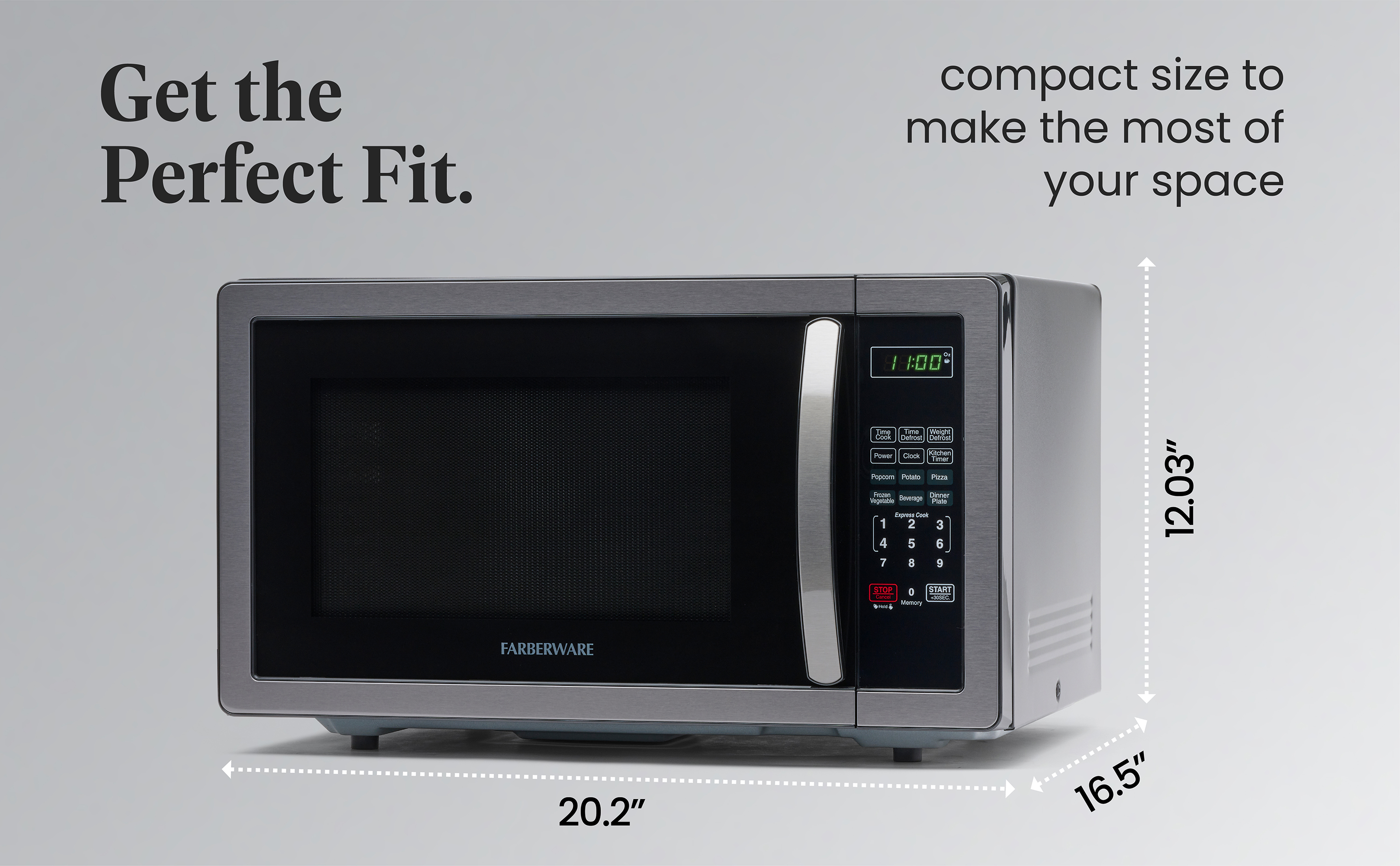 الحجم المثالي: يبلغ قياس هذا الميكروويف 1.1 قدم مكعب، وهو الحل المثالي للمساحة الصغيرة الذي يوفر طهيًا كامل الحجم في مساحة صغيرة. يتميز بتصميم داخلي وخارجي سهل التنظيف وهو مثالي للمنزل أو المكتب.