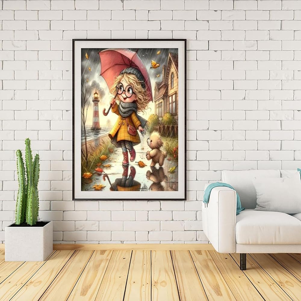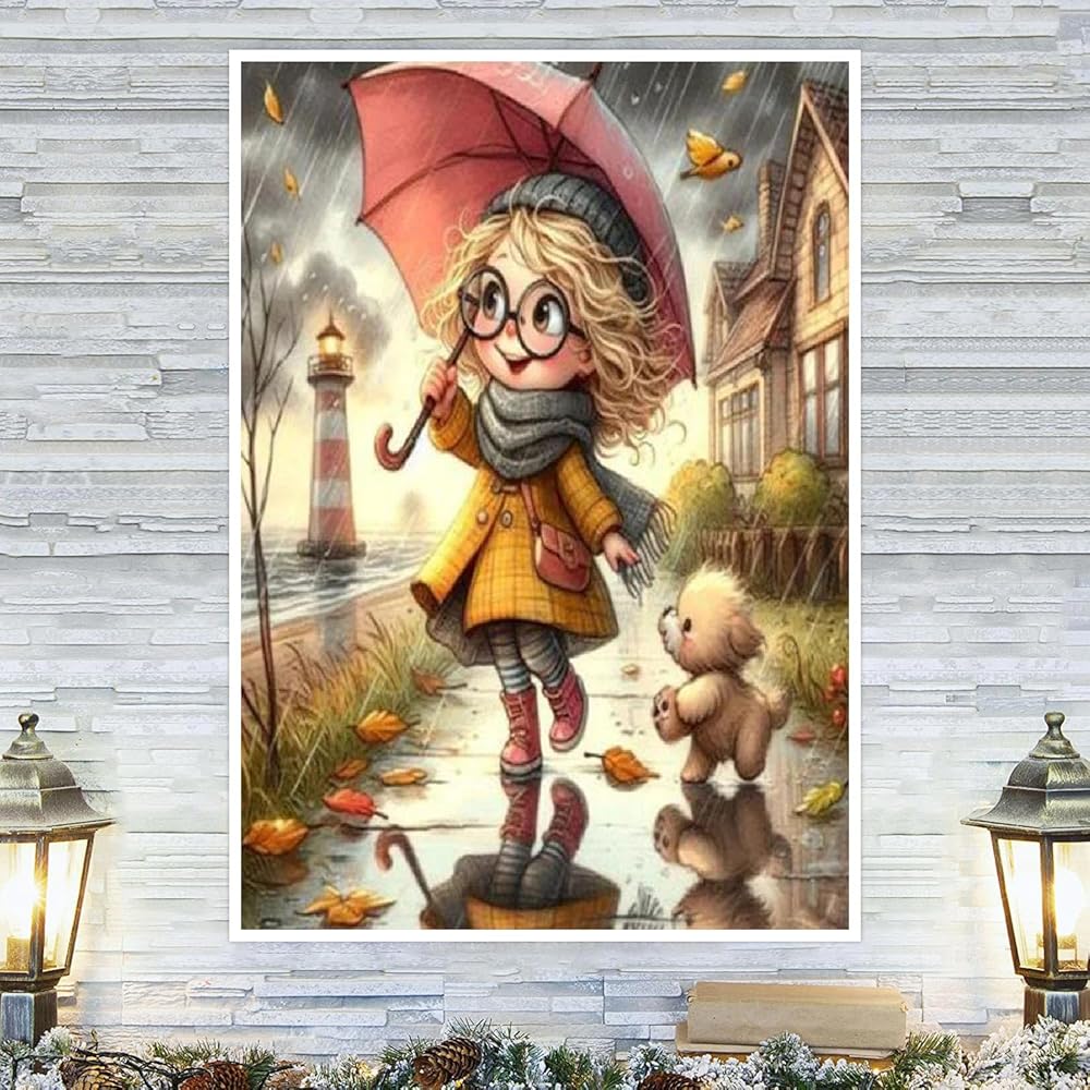 مجموعات الطلاء الماسي 5D من كليندو للبالغين والمبتدئين، لوحة فنية ماسية للفتيات والكلب مع الماس المستدير، مجموعة طلاء الأحجار الكريمة DIY لديكور الحائط المنزلي (11.8 × 15.7 بوصة)