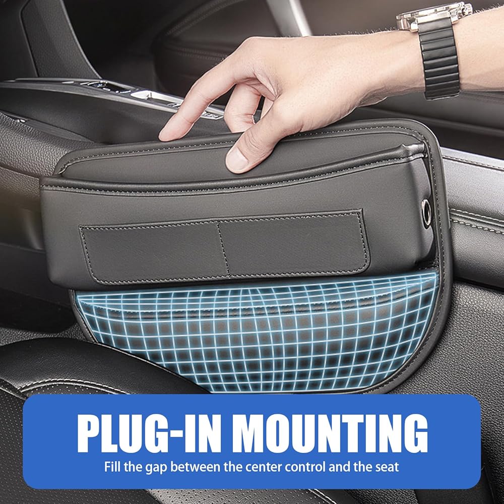 Yumfugu Pack-1 Car Seat Gap Filler Bag, 11.81" x 7.87" x 1.77" Leather Center Console Storage Box, Universal Car Seat Organizer Storage, Car Gap Filler Seat Gap Filler for Most Car Models (Black)