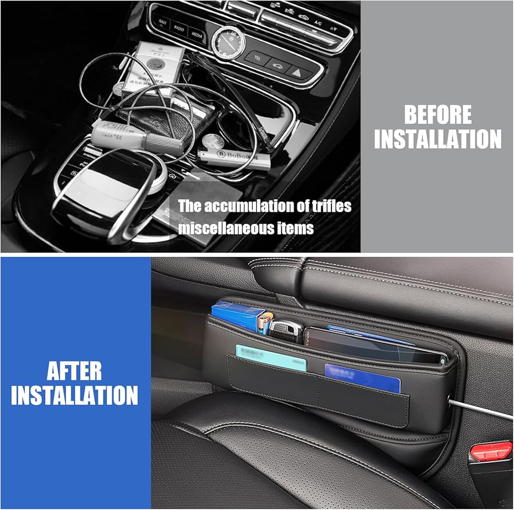Quick Installation: The storage box is quick and easy to install without using any special tools or making vehicle structural changes. Simply insert the storage box into the seat gap to install. The storage box has sponge padding, which can be firmly clamped in the seat gap without sliding or falling.