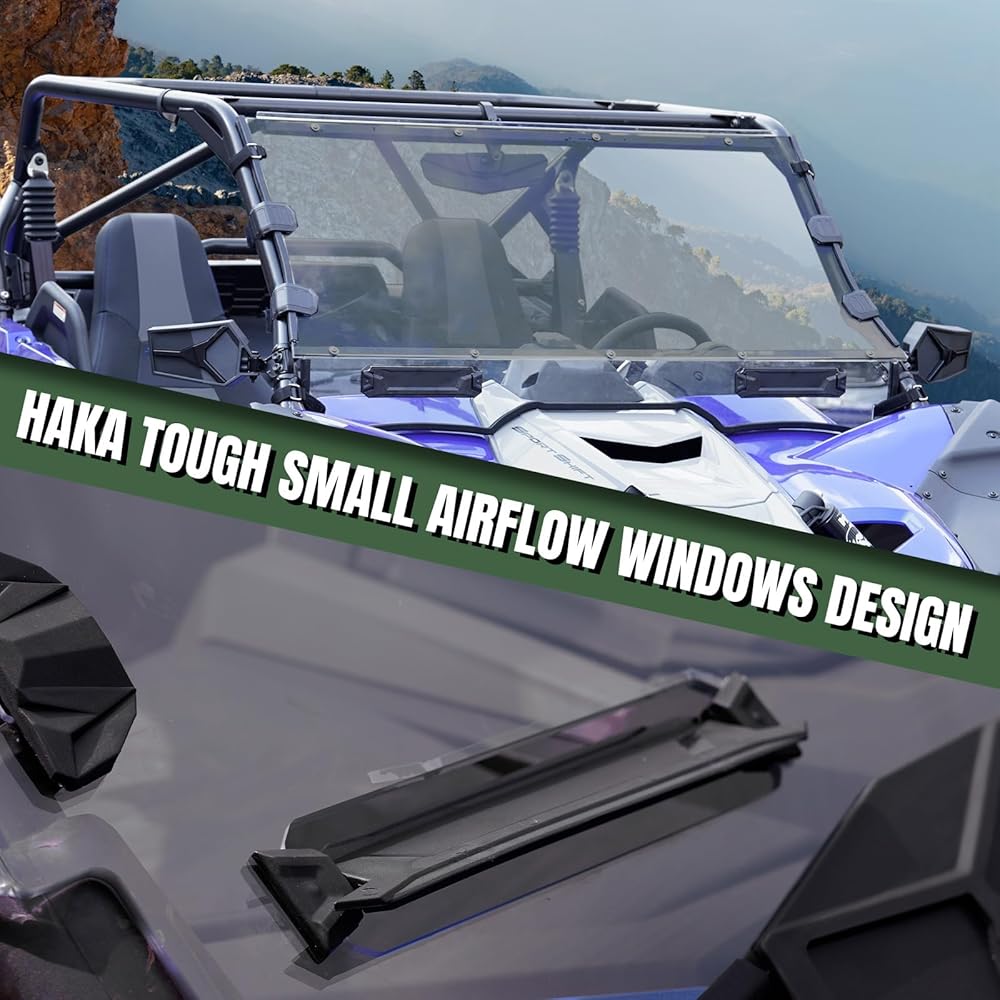 HAKA زجاج أمامي متين لملحقات Yamaha YXZ 1000 2019-2024، زجاج أمامي بفتحات تهوية لـ YXZ 1000R نافذة أمامية كاملة مقاومة للغبار ومتينة