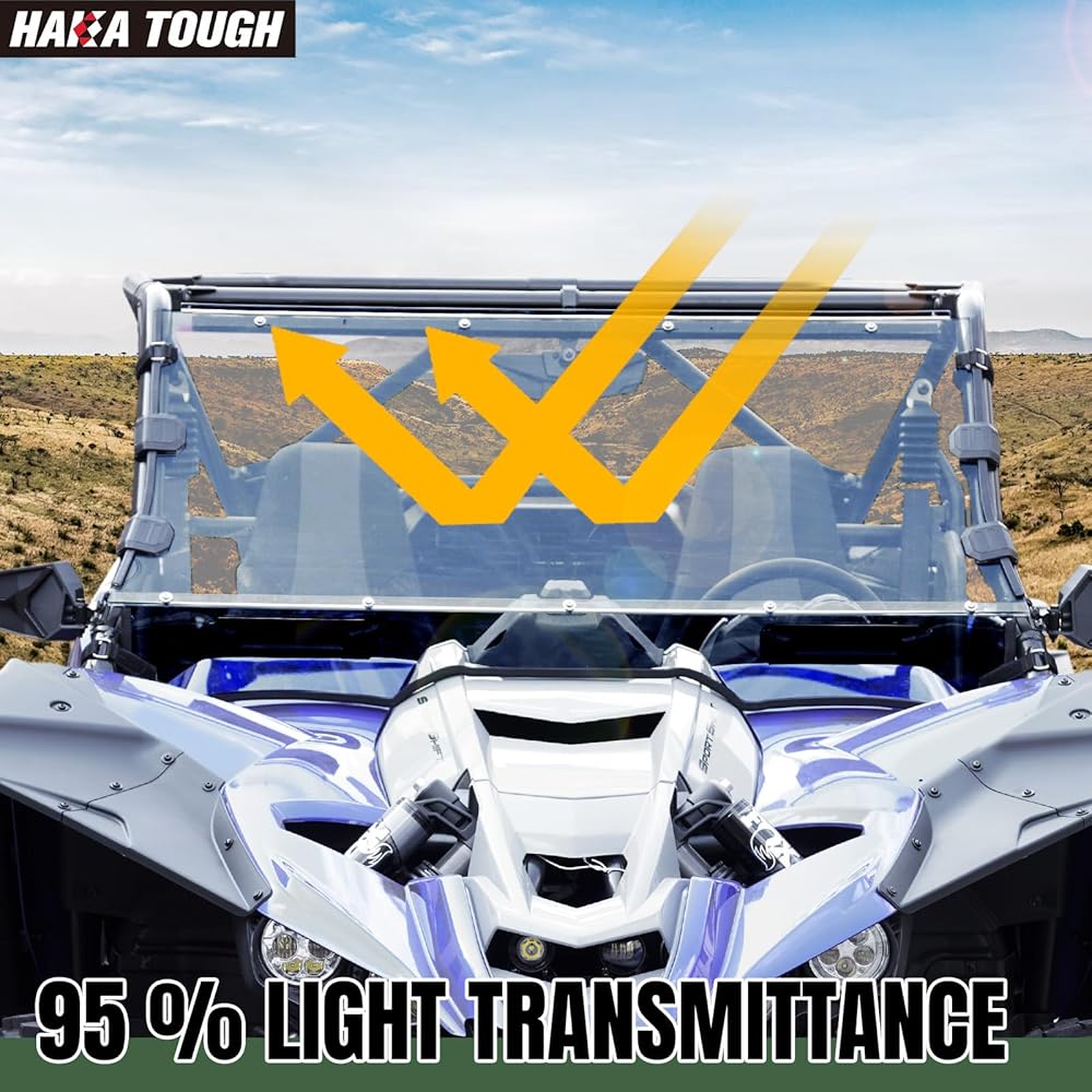 • ️ متانة جاهزة للطقس: مواجهة الطقس غير المتوقع أصبحت أمرًا سهلاً مع الزجاج الأمامي HAKA TOUGH، مما يوفر حاجزًا موثوقًا ضد المطر والرياح وحطام الطريق لمغامراتك على الطرق الوعرة.