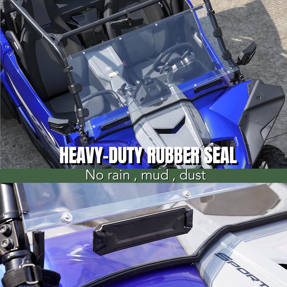 • توافق واسع: الزجاج الأمامي الكامل هو توافق مثالي لموديلات Yamaha YXZ 1000R/SE/SS/SS SE/SS XTR، من 2019 إلى 2024. تحقق من قائمتنا للتأكد من التوافق الكامل وجهز سيارتك بثقة. ***لا يمكن التثبيت مع سقف المصنع***