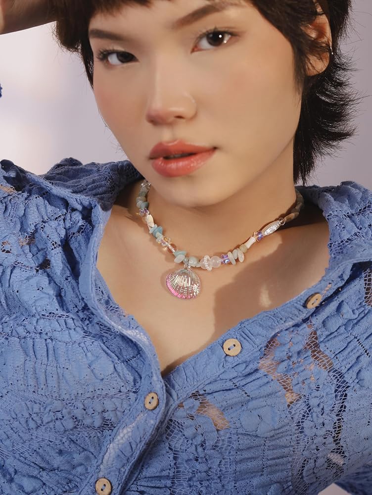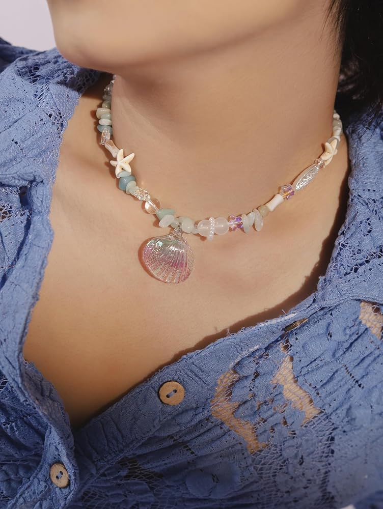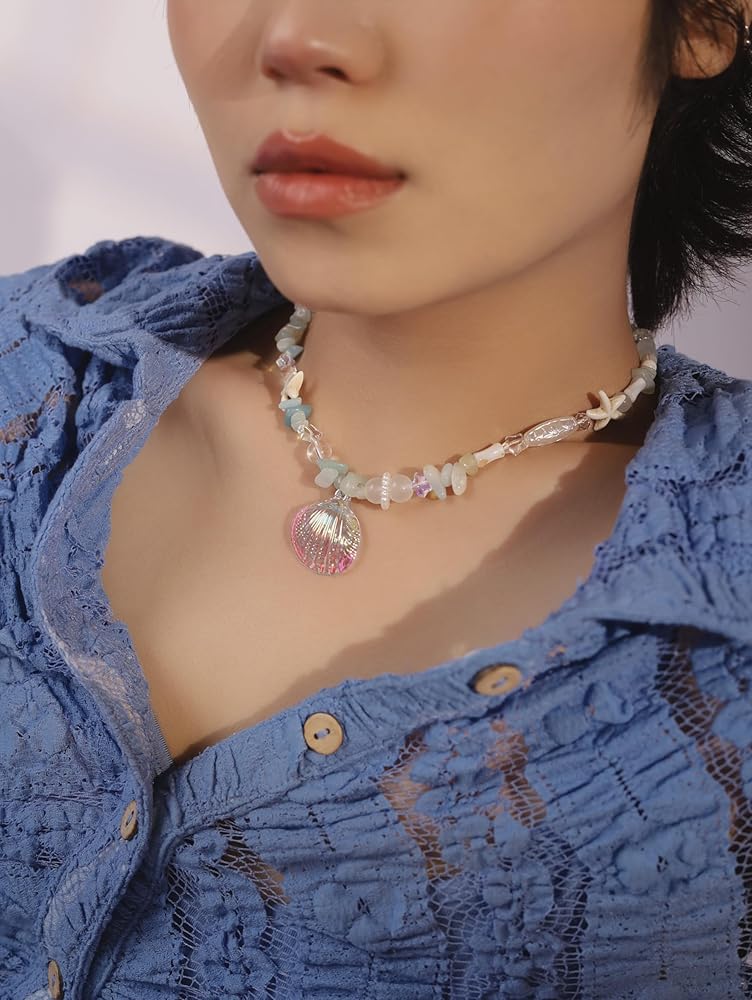 تتميز قلادة الصدف هذه بلمسة مثالية لرفع مستوى المجوهرات الجمالية الصيفية الخاصة بك