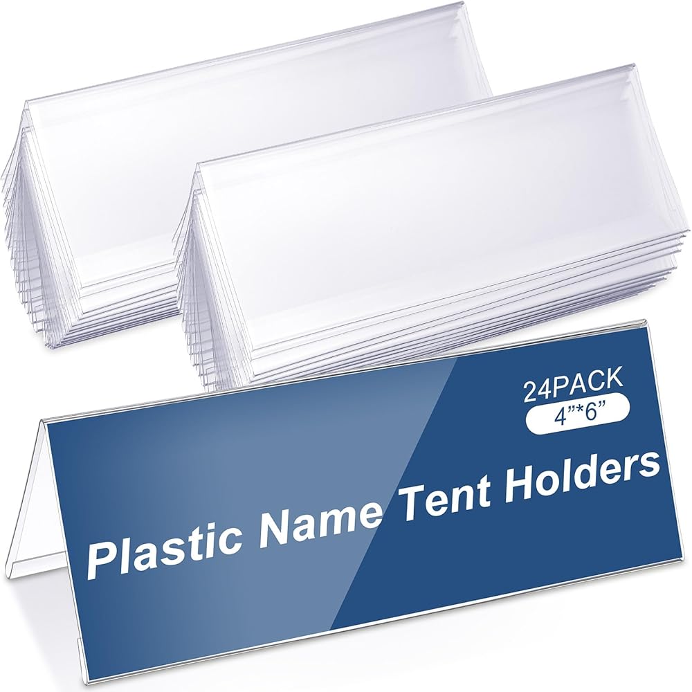 Vicenpal 24 قطعة من حاملات الخيام البلاستيكية الشفافة مقاس 4 × 6 بوصة حامل أكريليك للوحة الاسم لعلامة اسم المكتب لاجتماعات الطاولة والمكتب