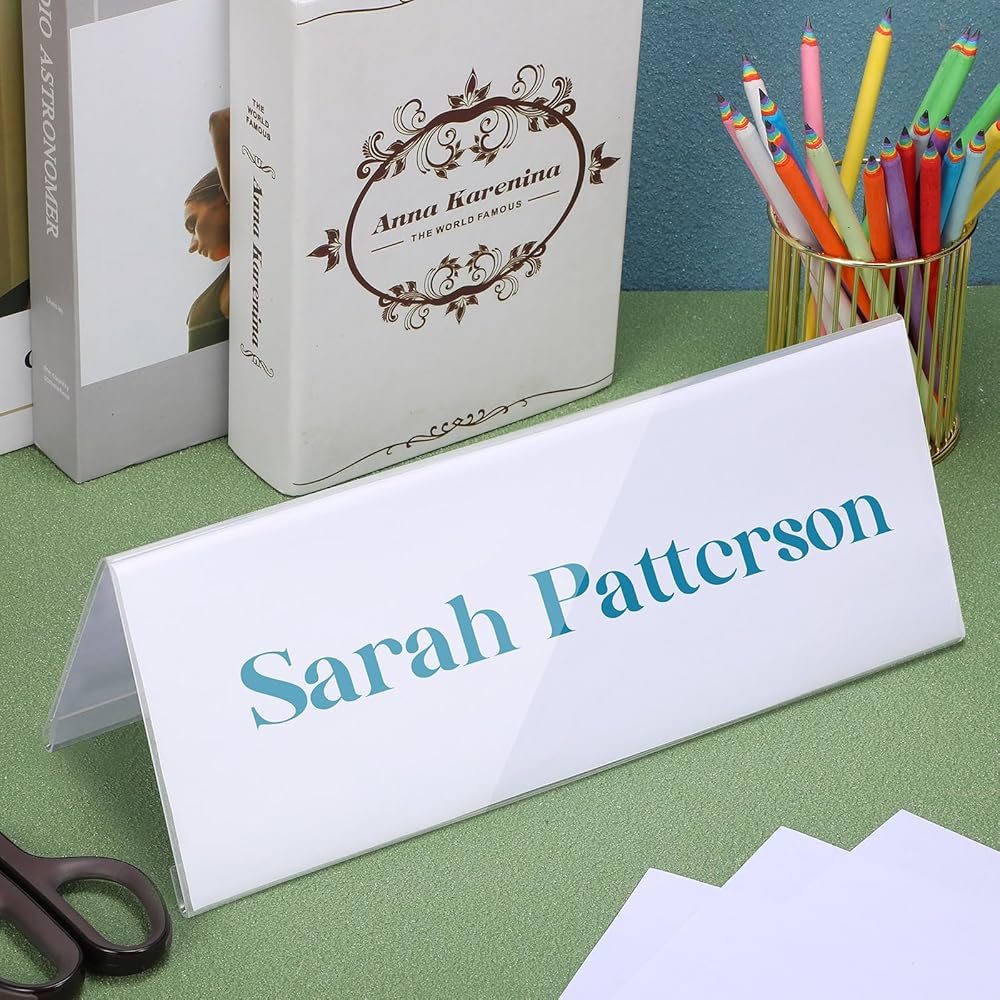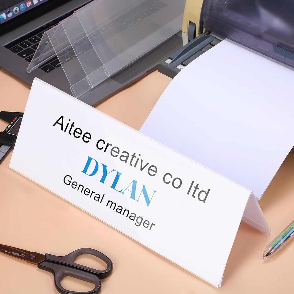 • Easy and Convenient to Use: you can put a label in our name plate holder to show your name well; It is suitable for use on various occasions; Double sided design is convenient to see your plate in different directions, ideal for meetings and other occasions