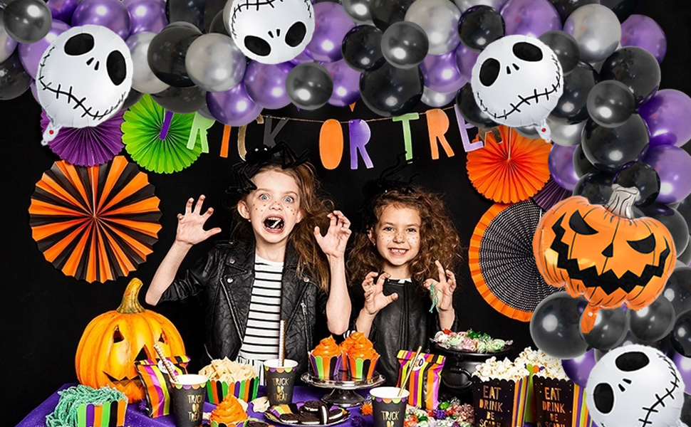 ديكور حفلات الهالوين: مجموعة إكليل بالونات الجمجمة مثالية لديكورات حفلات عيد الهالوين، وديكورات حفلات استقبال المولود الجديد، وديكورات الحفلات الهيكلية، وديكورات يوم الموتى، والكابوس قبل حفلة عيد الميلاد. يمكنك أيضًا التقاط صور مع العائلة أو الأصدقاء باستخدام خلفية بالونات الهالوين هذه.