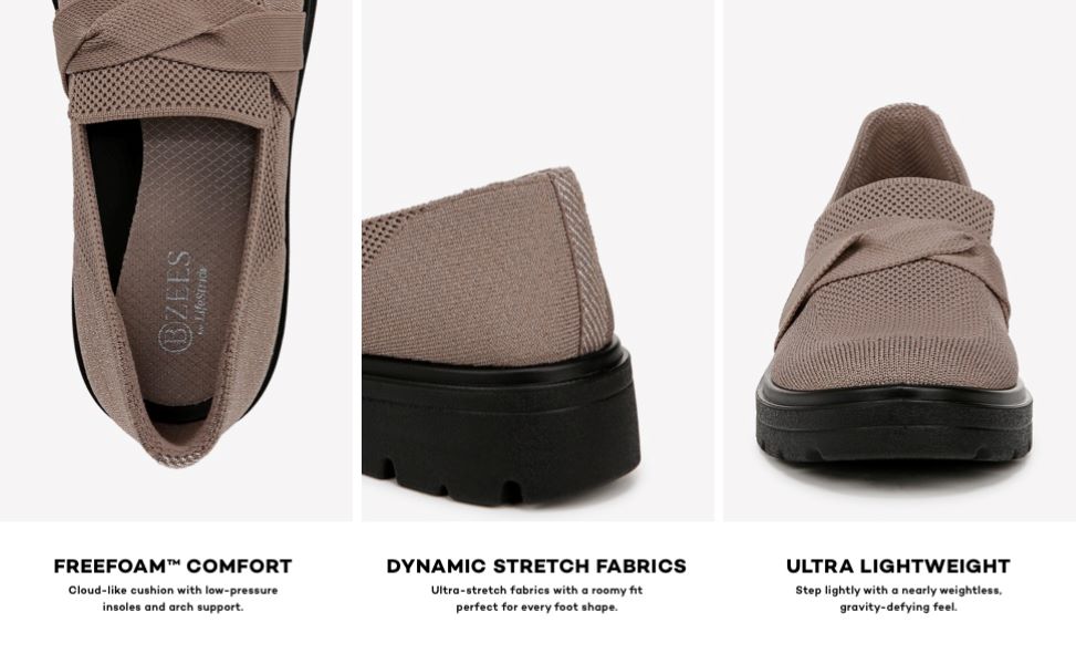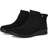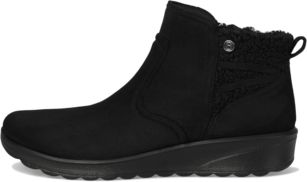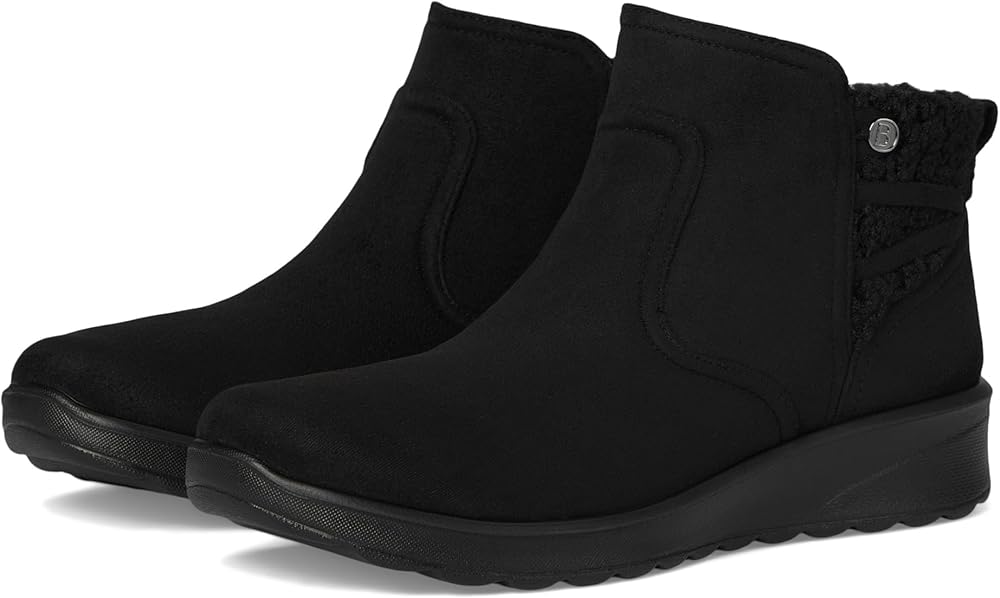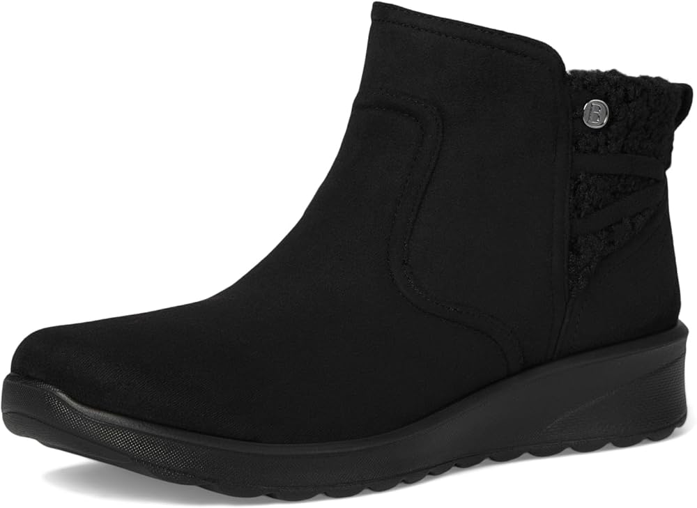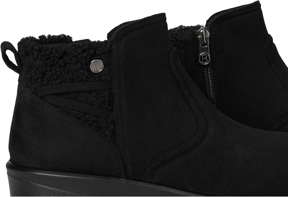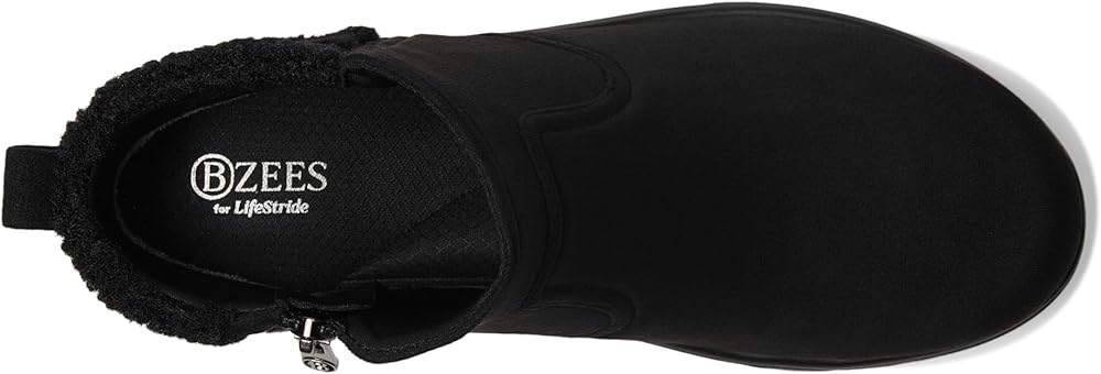 Clean and cozy boots! A soft, fuzzy lining + an easy zip closure + a machine-washable design makes this ankle bootie your cold weather companion. Stretch fabric upper with partially recycled linings and top cloth with a round toe. Side zipper. BLOOM™ materials: Eco-conscious algae-infused foam layer under the insole. BZEES Cloud Technology: Designed so you'll feel weightless, energized and free. Ultra Lightweight: Step lightly with a nearly weightless feel. Dynamic Stretch Fabrics: Move freely in shoes with built-in stretch. FreeFoam™ Comfort: Low pressure insoles with maximum foot contact and cushy arch support. Anti-Microbial and Odor Control technology. 3.15 inch boot height, 10 inch leg circumference. 5/8 inch platform, 3 1/8 inch wedge heel. EVA outsole. Get Width It: Countless pairs of Bzees come in wide width shoes for women. Machine Washable: Wash on cold and air dry.