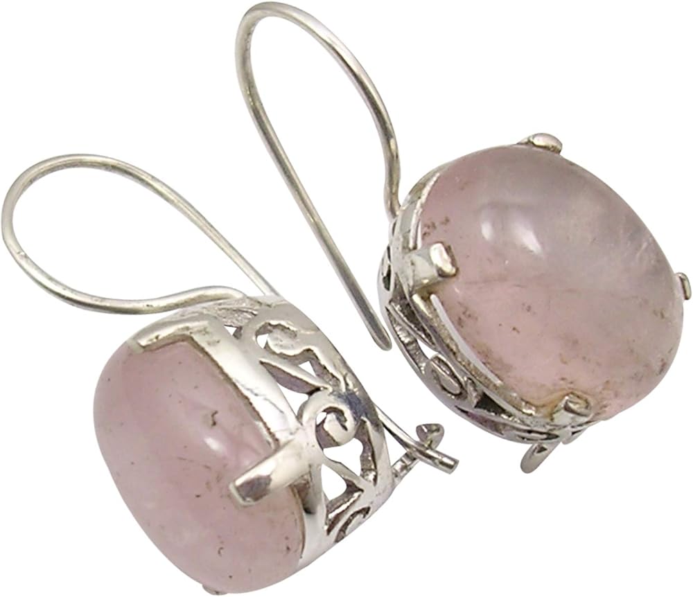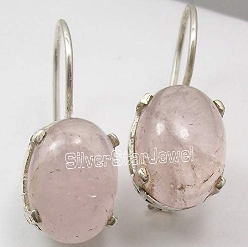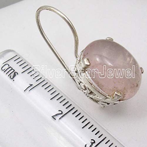 SilverStarJewel Solid Sterling Silver Pink Rose Quartz Earrings 1.1" Wedding Gift