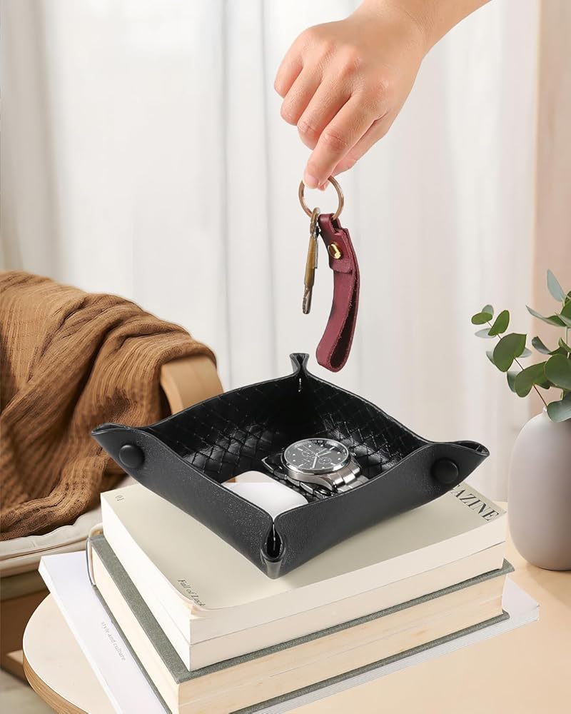 تُعد الصينية الجلدية الحل الأمثل للتخزين إذا كنت تضع مفاتيحك دائمًا في غير مكانها. ما عليك سوى وضع مفاتيحك فيها في نهاية اليوم وثق بأنها ستكون هناك عندما تخرج في الصباح.