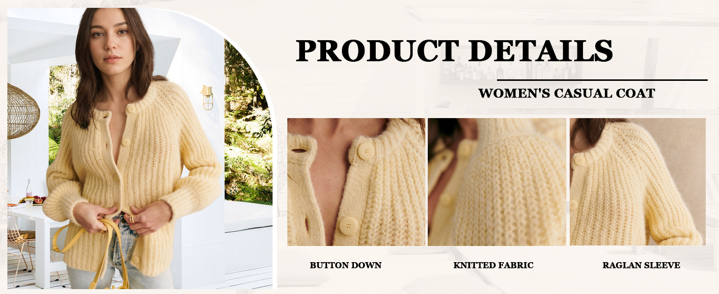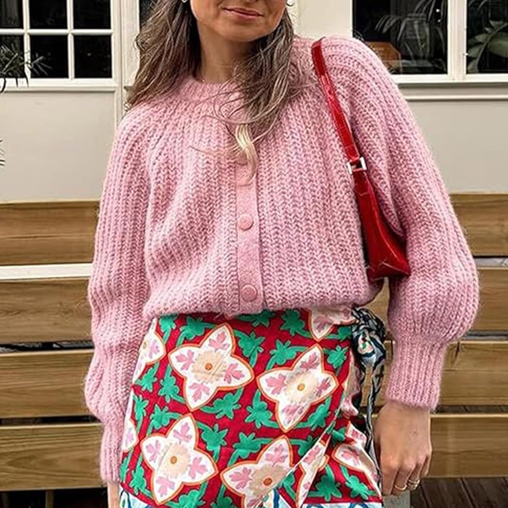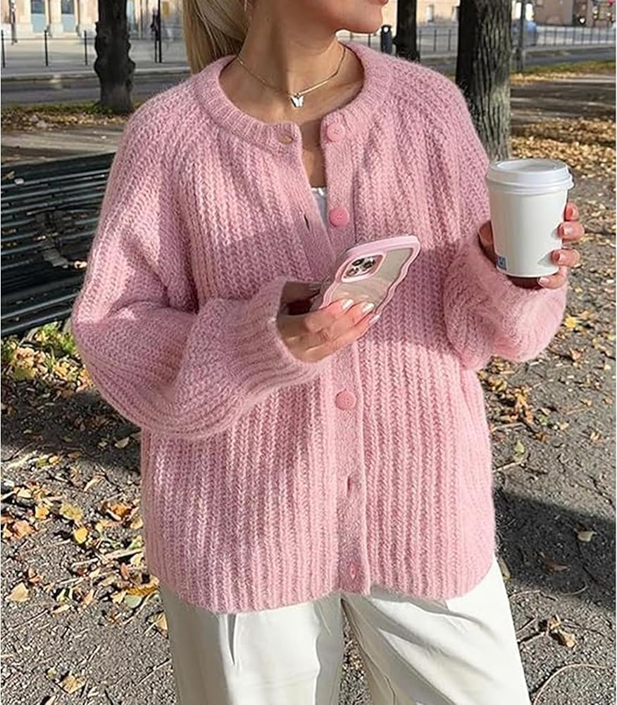 سترة صوفية Hixiaohe للنساء بأكمام طويلة وأزرار Y2K سترة محبوكة مكتنزة للخريف كاجوال مفتوحة من الأمام ملابس خارجية معطف تريكو (وردي، S)