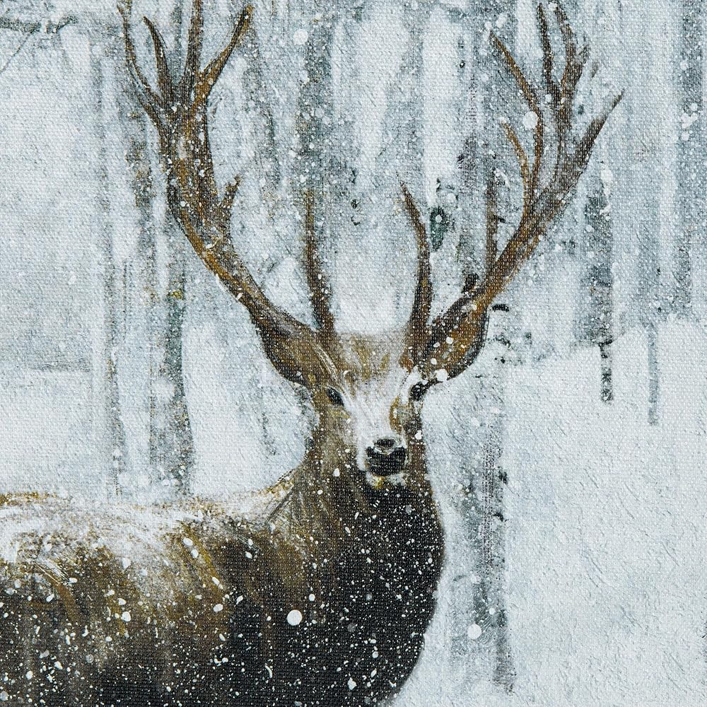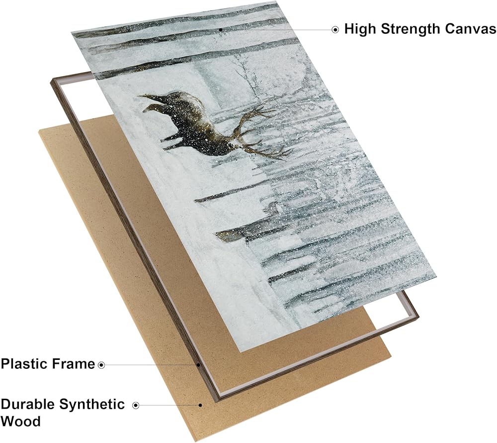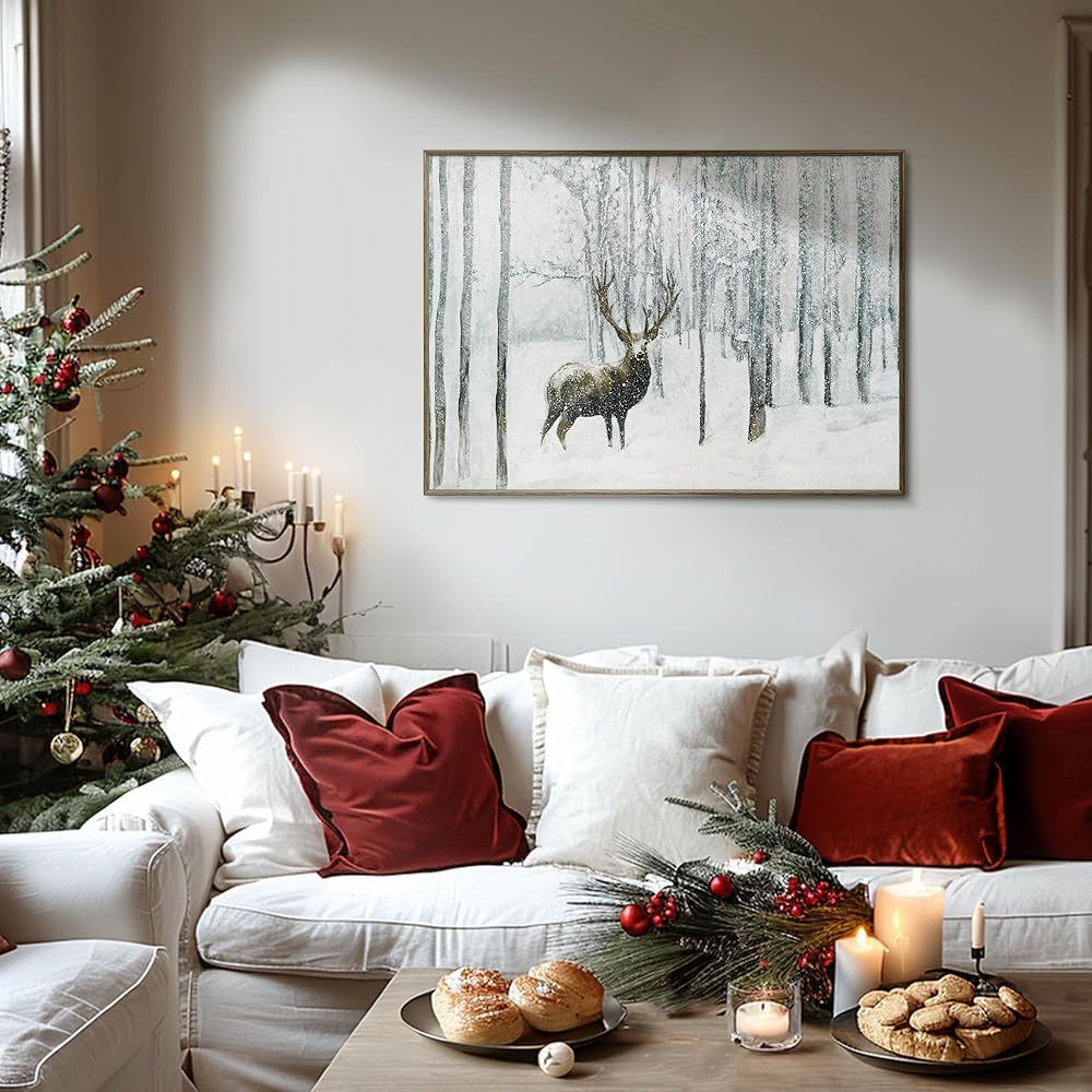 ArtbyHannah 20x28 بوصة عيد الميلاد قماش جدار الفن، مؤطرة ديكور جدار عيد الميلاد، جدار الفن الشتوي مع الغزلان في الغابة الثلجية، ديكور عيد الميلاد الرنة لتزيين جدار عيد الميلاد