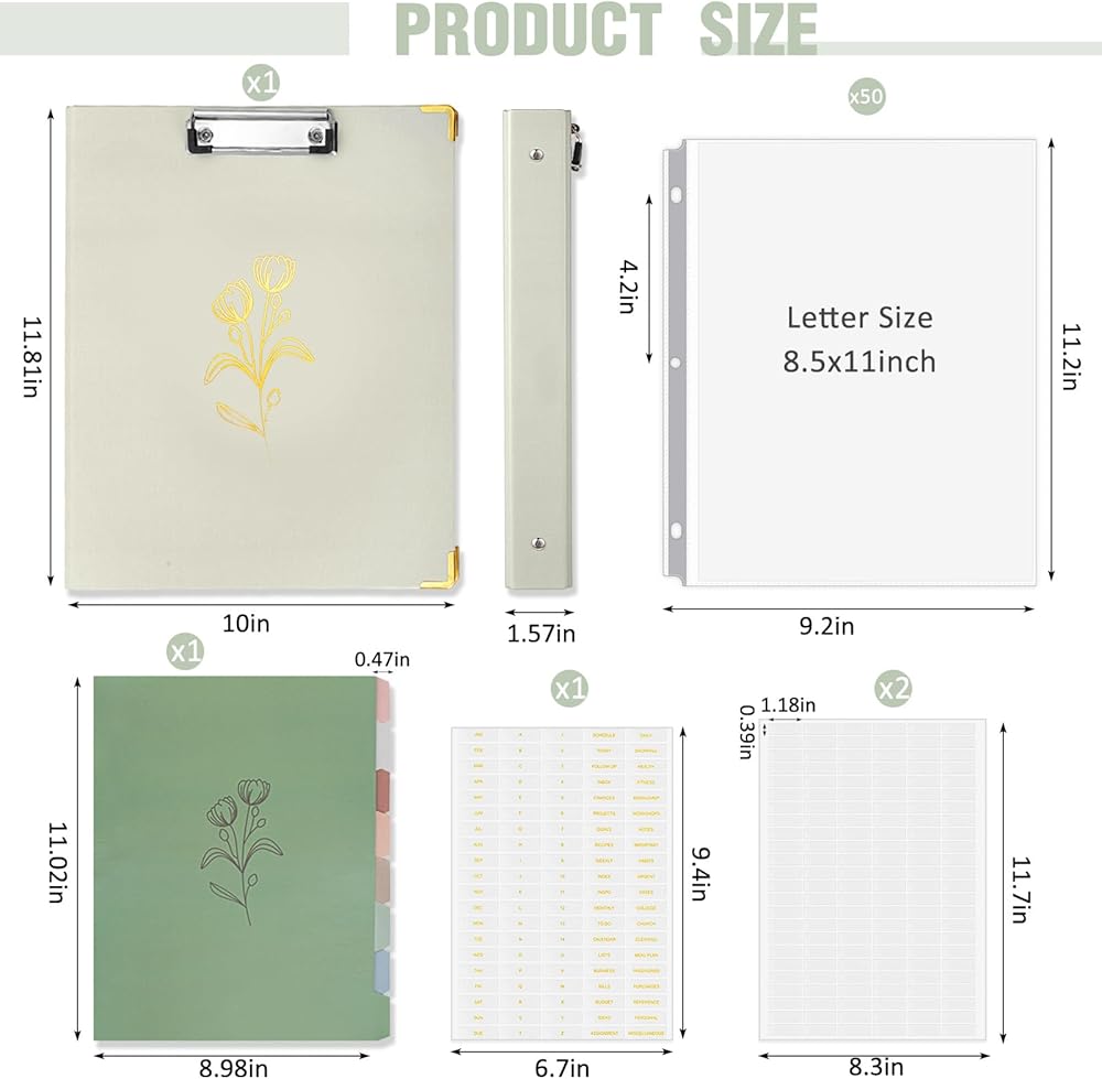 3 Ring binder dividers: about 8.98 x 11.02 inches/ 22.8 x 28 cm