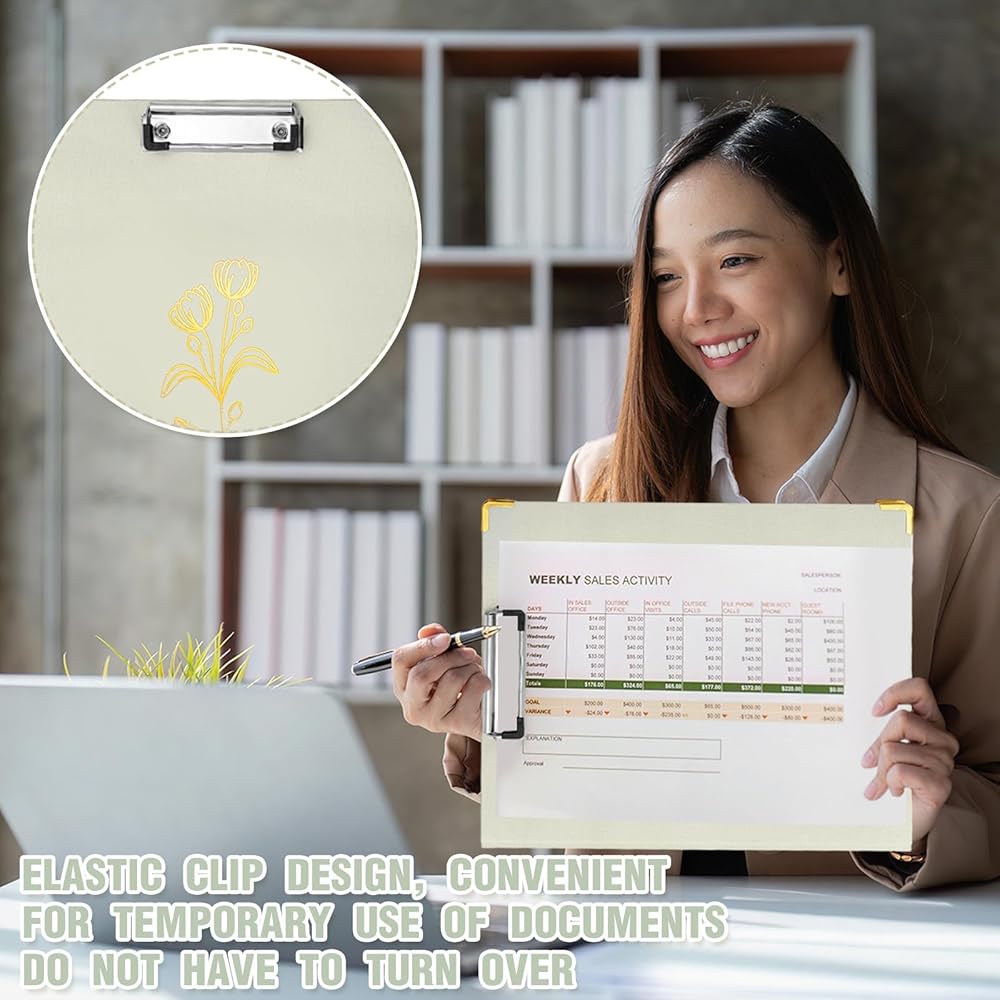 Complementing its chic exterior, the 1 inch binders have a practical elastic clip on the front, tailored to store temporary documents.