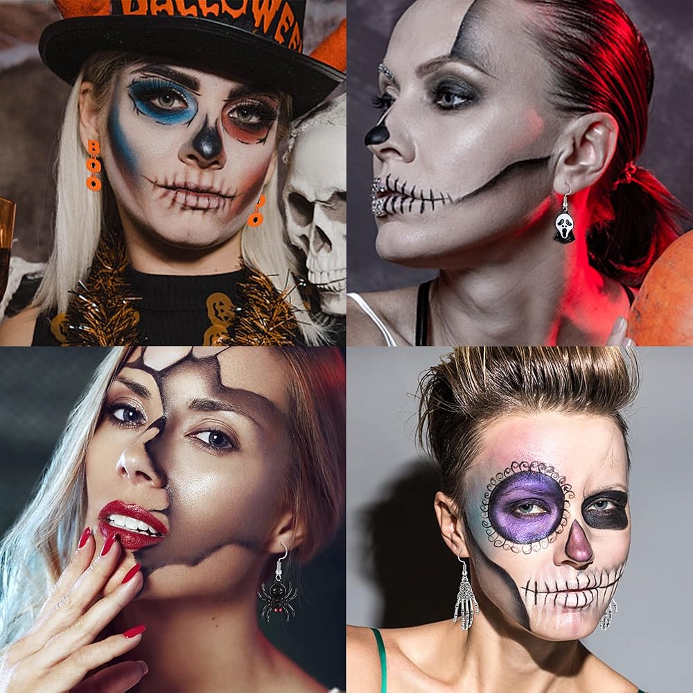 🎃هدية مثالية للهالوين🎃 مجموعة أقراط الهالوين هي اختيار رائع كهدية لنفسك، أو ابنتك، أو زوجتك، أو أختك، أو عائلتك، أو أصدقائك، أو صديقتك. مثالي للهالوين، والحفلات، والحفلات التنكرية، ومكياج الهالوين والارتداء اليومي.