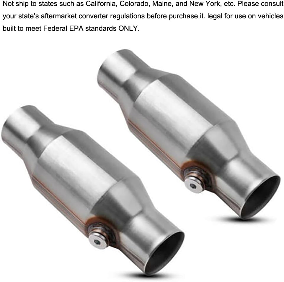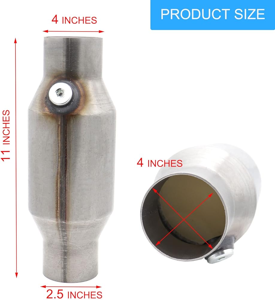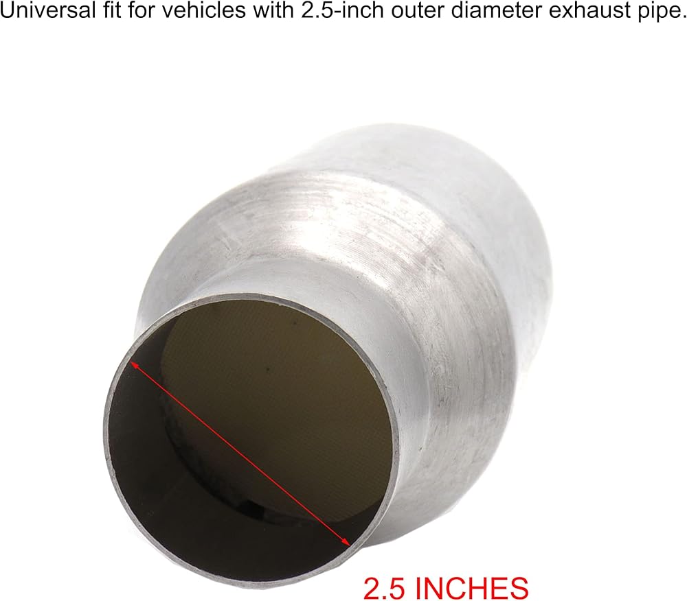 Standard 2.5" inside diameter inlet/outlet, 11" overall length, universal for vehicles with 2.5 inches outer diameter exhaust pipe.