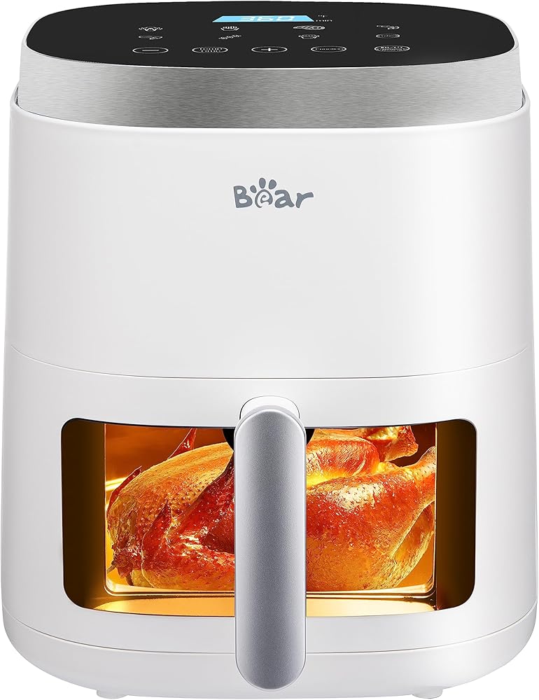 مقلاة هوائية، 5.3 لتر للوجبات الصحية السريعة والخالية من الزيت، رؤية سهلة وشاشة لمس رقمية ذكية 8 في 1، تذكير بالرج، سلة آمنة للغسل في غسالة الأطباق وغير لاصقة، بطانة ورقية ووصفات متضمنة، أبيض