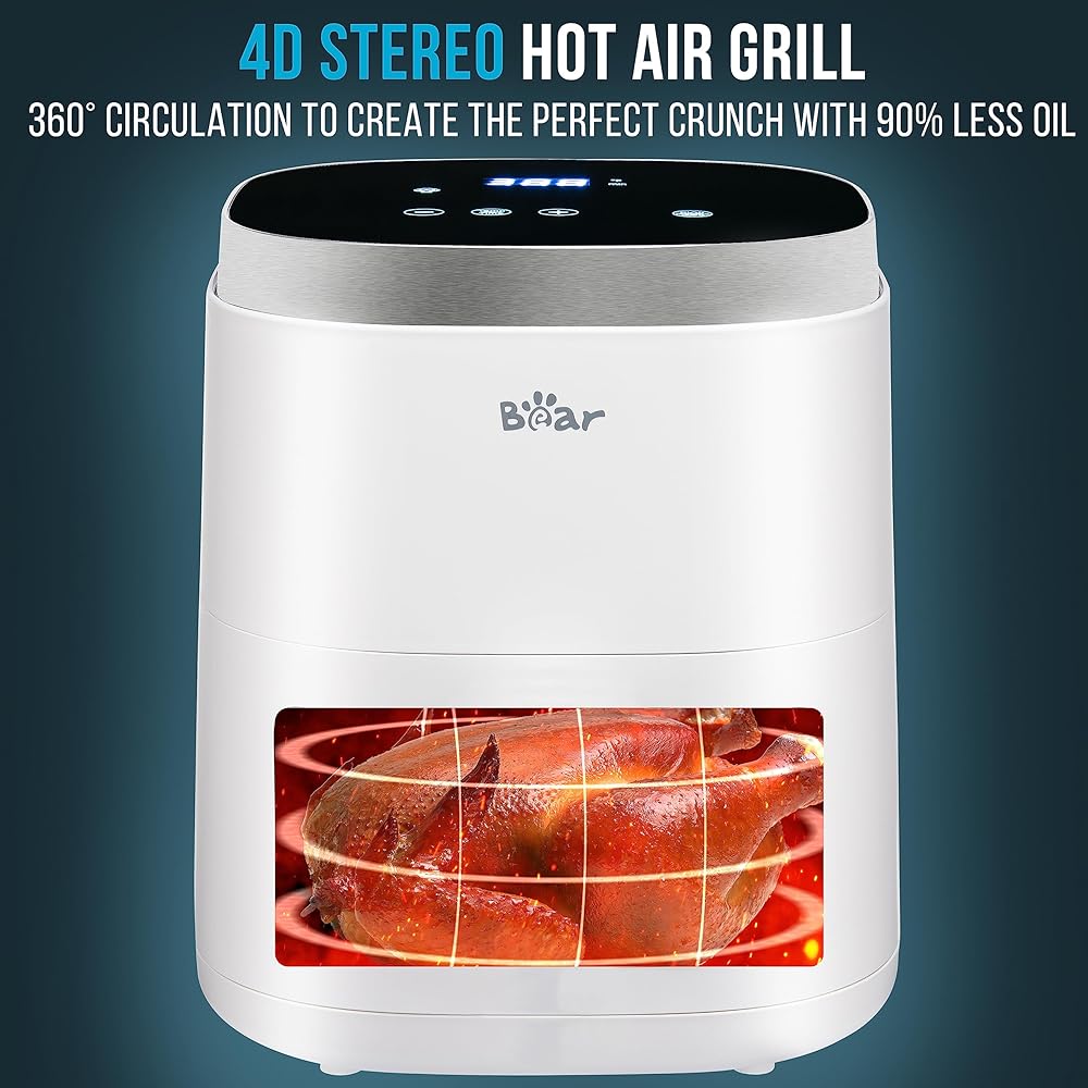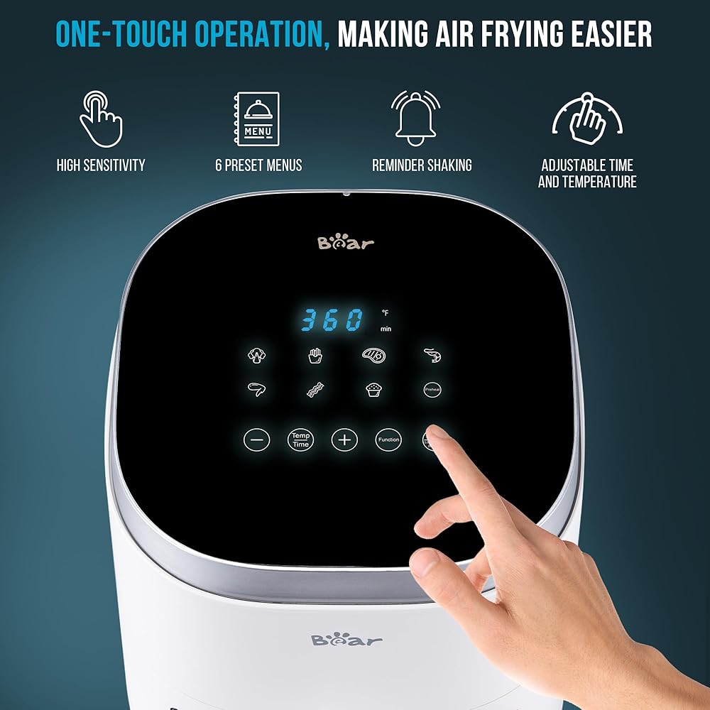 • [الطهي بدون جهد]: استمتع بالراحة بلمسة واحدة مع 8 أوضاع محددة مسبقًا على الشاشة الكبيرة. قم بتخصيص وصفاتك من خلال التحكم الرقمي البديهي والوقت القابل للتعديل ودرجة الحرارة. لا تقلق من إفساد الطعام، فميزة "التذكير بالرج" تضمن الحصول على نتائج مطبوخة ومقرمشة بشكل متساوٍ