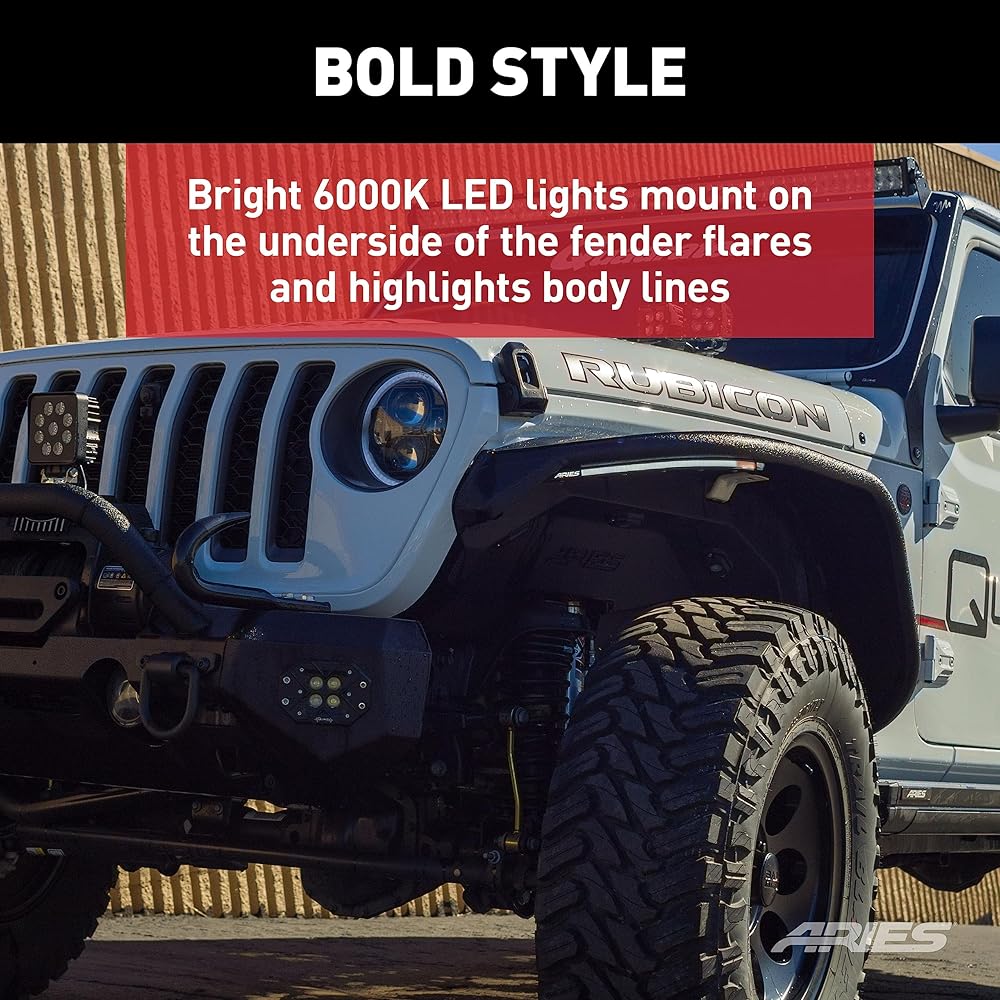 STYLED FOR JEEP - Specifically designed for the JT, JL, and JK models, these lights serve to enhance the visual appeal of your ARIES fender flares and accentuate its body lines, elevating your wheel wells and tires with a bold and distinctive style