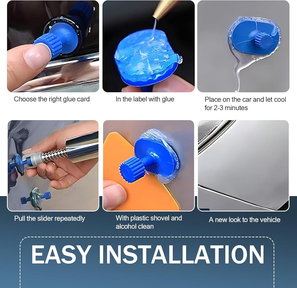• Unique Advantages: This car body dent repair kit does not affect the original color of the car, there is no color difference, and the repair time is shorter, and it does not delay the normal use of the vehicle. The overall volume is small, easy to store, can be reused, and does not take up too much space. It is a must-have repair tool for car enthusiasts.