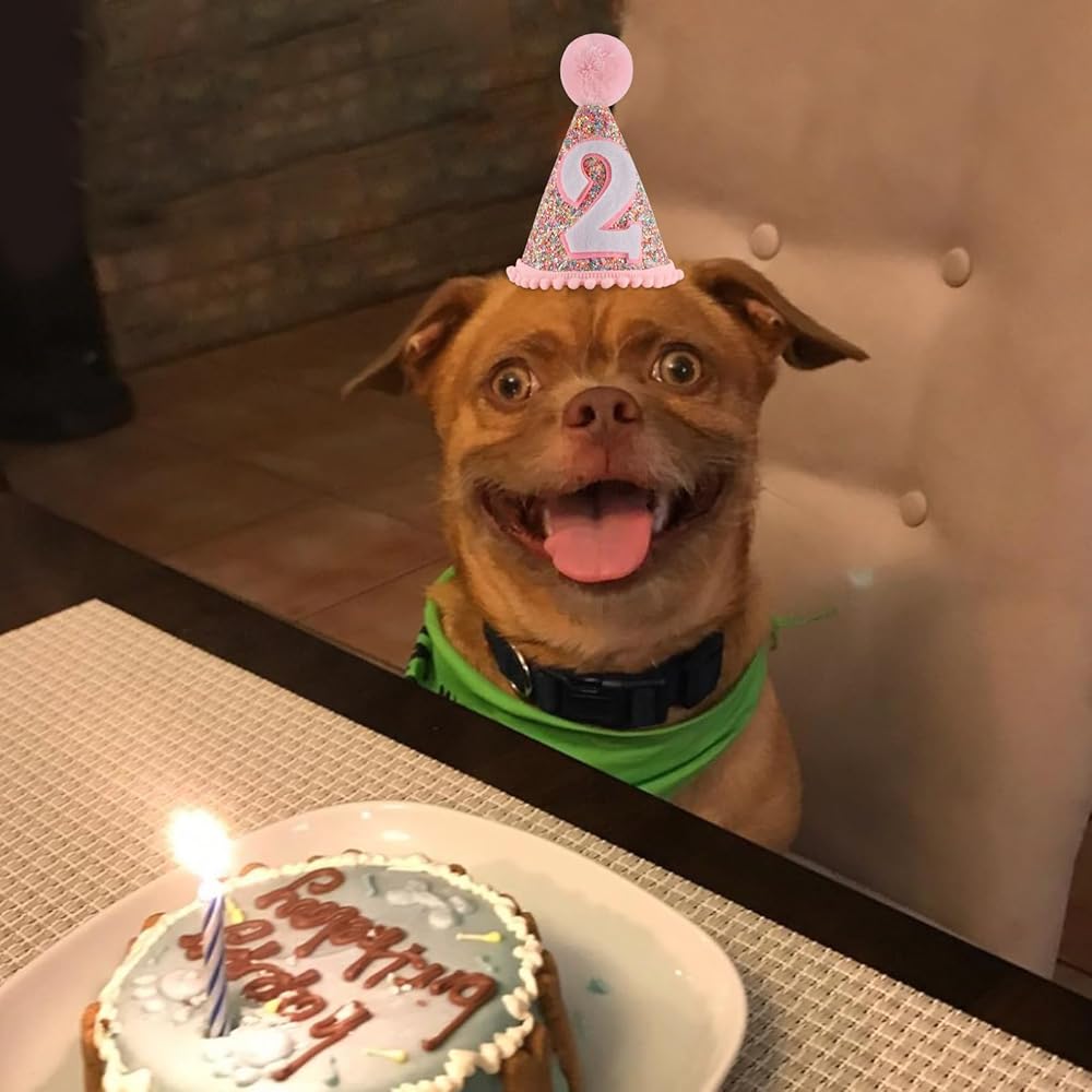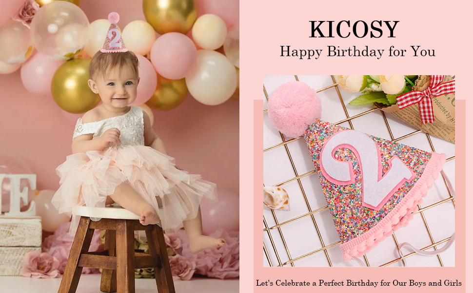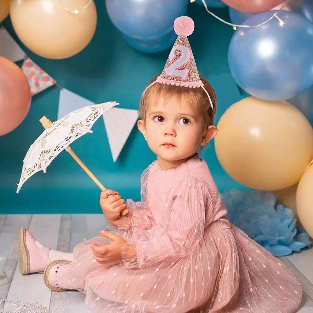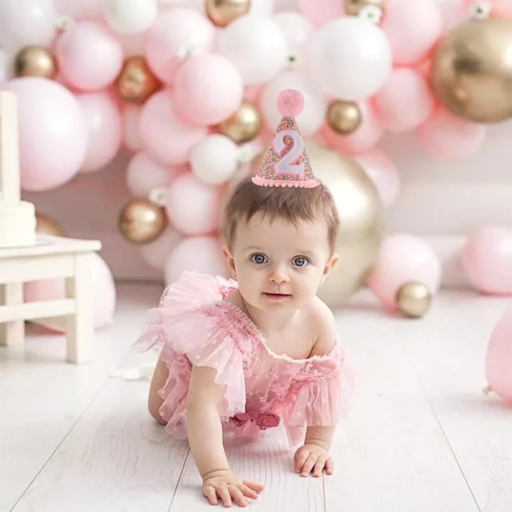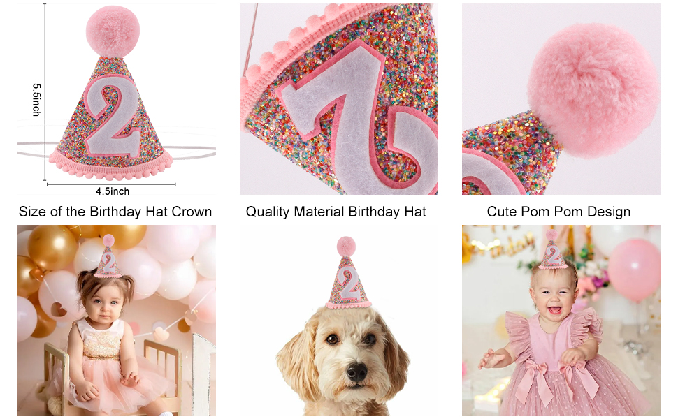 🎁مواد مختارة - قبعة حفلات أعياد الميلاد هذه مصنوعة من اللباد اللامع المكتنز، والتي تتميز بزخرفة وردية اللون، وجزء علوي من الكرة الوردية والرقم. سطح قبعة عيد الميلاد مصفح لجعل المادة الكلية أكثر سمكًا وأكثر نسيجًا.