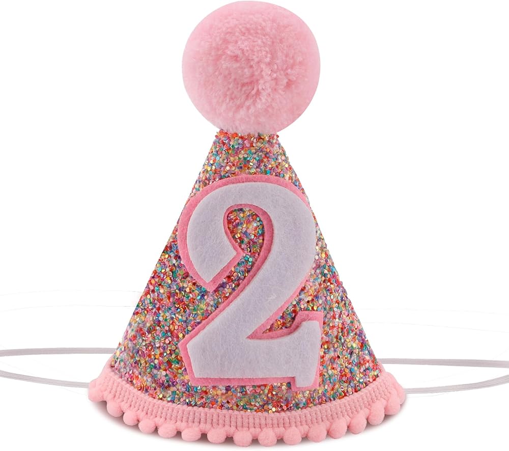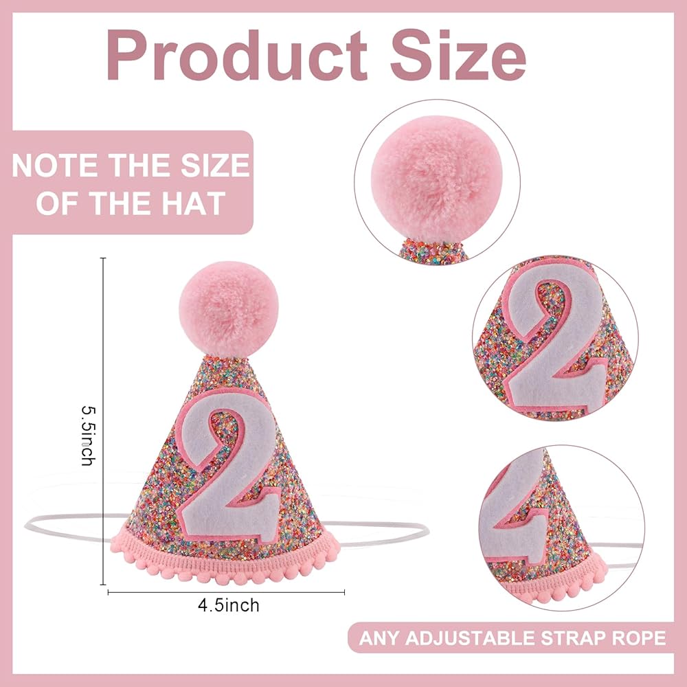 قبعة مخروطية لعيد الميلاد الثاني، قبعة عيد ميلاد بيضاء لامعة مع قبعة قوس قزح لعيد الميلاد باللون الوردي لحفلة عيد الميلاد، قبعة دعائم صور عيد ميلاد لامعة للأولاد والبنات