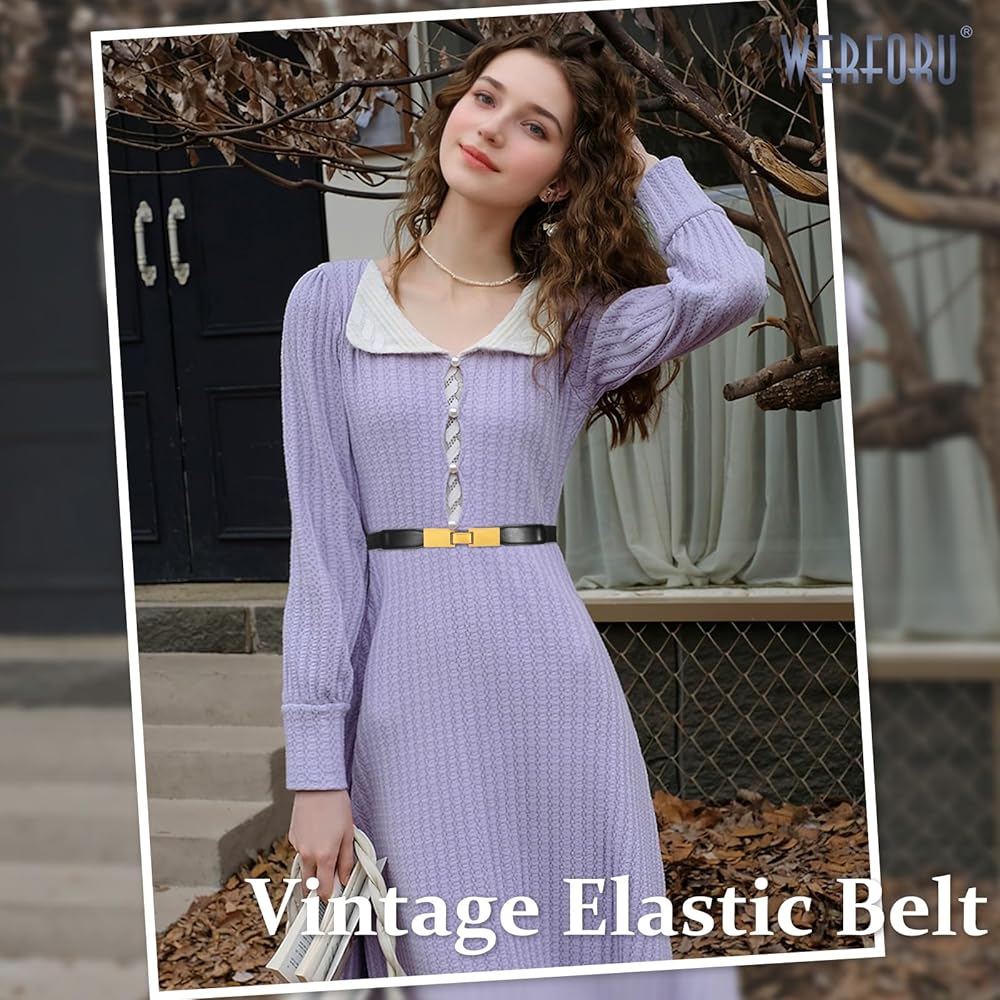 طراز عتيق الطراز: هذا الحزام المرن الرفيع ذو الطراز الكلاسيكي ذو الطراز العتيق، لطيف للغاية ومصنوع بشكل جيد، سيعيدك إلى السبعينيات. الحزام المرن النحيف يجعل خط الخصر لطيفًا على الملابس المختلفة، ويناسب جيدًا السترات والسترات والفساتين، وسوف تحصل على الكثير من الإطراء بارتداء هذا الحزام!