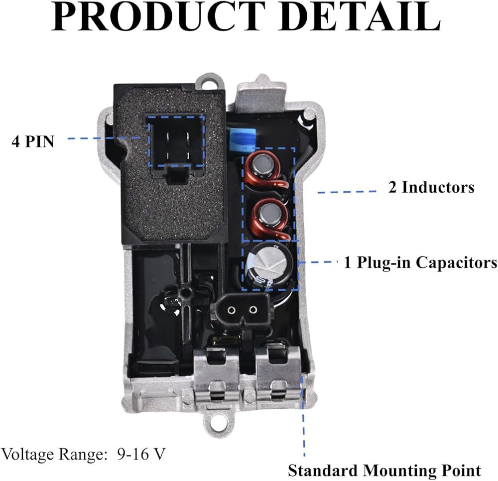 توصيل كهربائي أفضل: منظم مقاومة المنفاخ مصنوع من سبائك الألومنيوم عالية الجودة وبلاستيك أكريلونتريل بوتادين ستايرين، مع توصيل كهربائي أفضل، وقوة عالية، ومنع الصدأ، ومقاومة التآكل، بحيث تكون سرعة مروحة تكييف هواء سيارتك أكثر استقرارًا، حتى تتمكن من يمكن أن يكون لها درجة حرارة مناسبة في أي ظروف جوية.