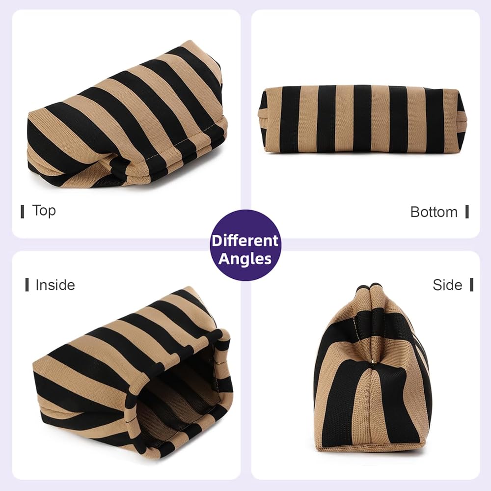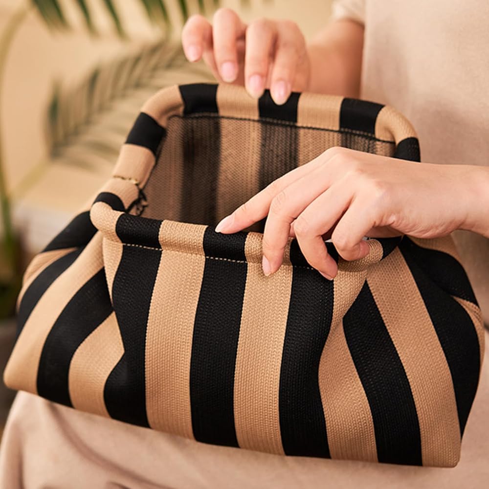 تصميم متعدد الوظائف: توفر هذه الحقيبة المنسوجة استخدامًا متعدد الاستخدامات كحقيبة مستحضرات تجميل أو إكسسوارات، مثالية لتنظيم فرش الشعر أو المكياج أو مستلزمات الخياطة. خامتها القابلة للتمدد تجعلها مثالية للسفر والتخزين المنزلي.