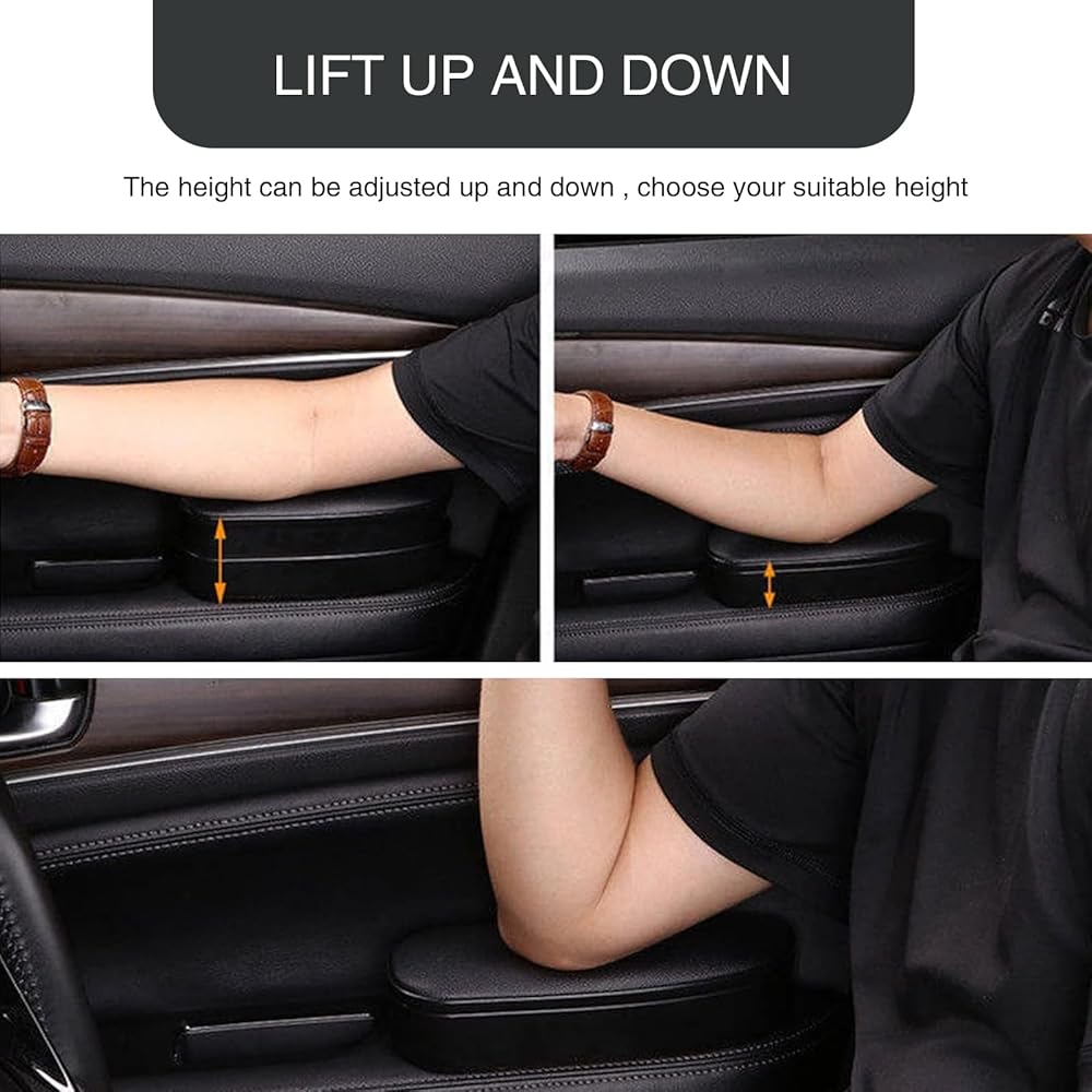 High Quality: This car armrest is made of high-quality leather and plastic waterproof and dustproof materials. This elbow rest stores flexibly and raises the armrest up to 2 heights so you can adjust the height to fit your driving position.