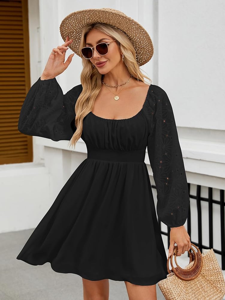 خيارات تصميم متعددة الاستخدامات: بفضل خط العنق المربع والظهر المكشكش، يوفر هذا الفستان خيارات تصميم متعددة الاستخدامات. ارتديه مع رقبة مربعة لإطلالة أنيقة وغير رسمية خلال فصلي الخريف والربيع، أو اختاري النمط بدون أكتاف لإطلالة رومانسية مثيرة خلال الصيف أو في الأيام الحارة.
