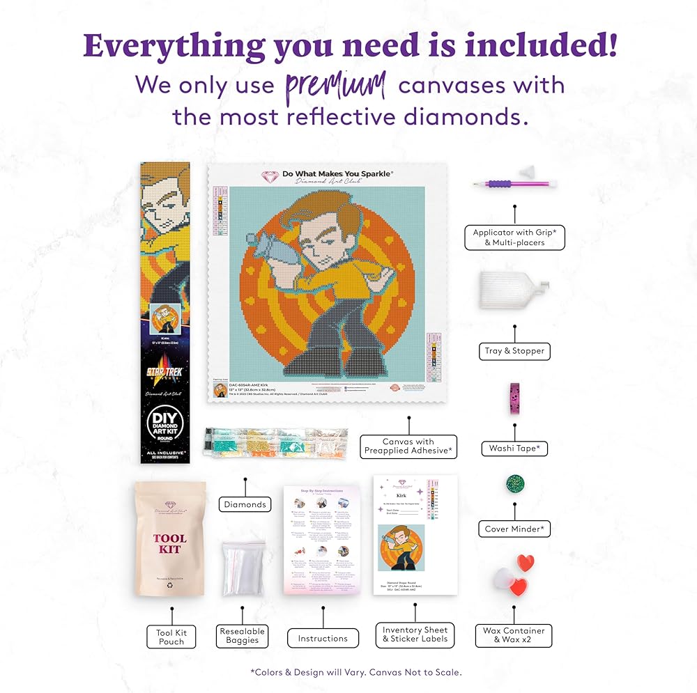 Diamond Art Club manufactures high-quality products with unique artwork to inspire creative minds everywhere. Our diamond painting products are great for both beginners and advanced crafters. Our products are officially licensed, making our canvas selection unparalleled. They feature popular characters, animals, and more to inspire creative fun for all! Each diamond art piece is great to work on alone or with a group of friends. Once finished, frame your finished artwork as home decor or gift it to a loved one. Diamond Art Club kits also make perfect craft-station activities. They require little effort and are mess-free, making them easy and fun crafts for all adults, especially those who love puzzles, crocheting, and art projects!