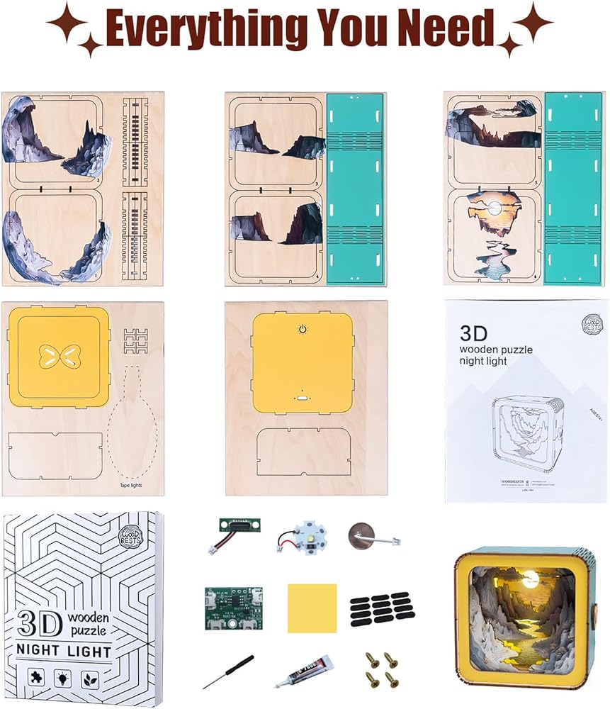 3D لغز ضوء الليل - DIY ضوء LED 3D كهف خشبي لغز الفن مصباح ومجموعات الحرف للأطفال والكبار - هدايا عيد الميلاد اللعب - ديكور مكتب المنزل لعبة الأسرة