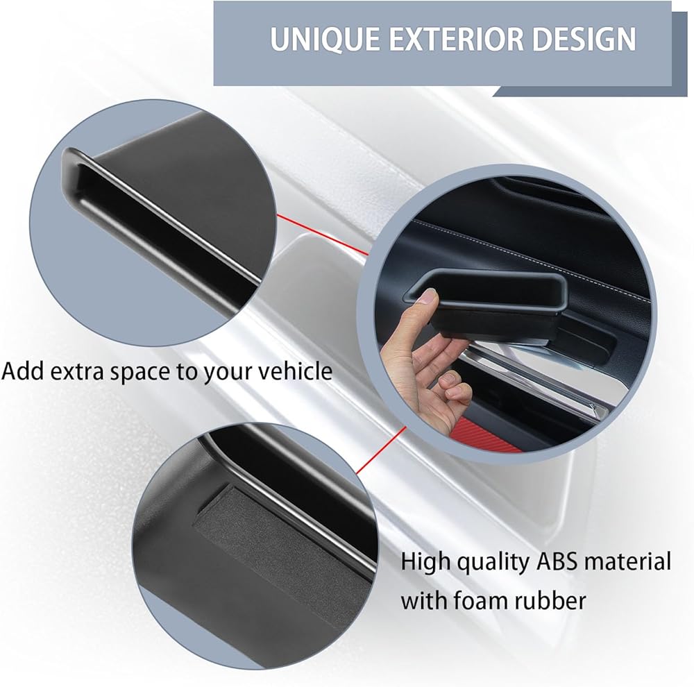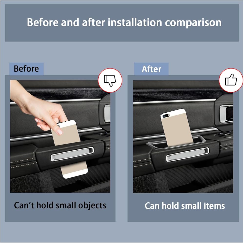 【Reliable Protection】: This door storage box protects your door slot from getting dirty. It comes with a foam liner that prevents your car door slot from getting scratched. It does not interfere with opening and closing your car door and will not move when driving. So you don't have to worry about interfering with normal driving and riding.