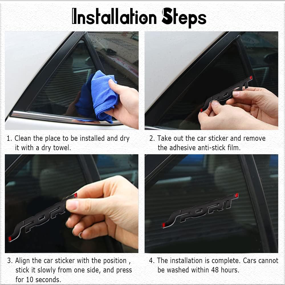 [Easy to install]: 1. Clean the position to be pasted and keep it dry. 2. Peel off 3M and align it with the position to be pasted. 3. Press for about 1 minute to ensure that the 3M adhesive on the Sport Car Emblem is well bonded.