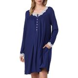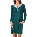 استمتع بالنوم بشكل مريح في الليل مرتديًا فستان Eileen West ذو الأكمام الطويلة والمتماسكة. يتميز هذا الفستان المطرز بتفاصيل من الدانتيل بياقة على شكل حرف V وأكمام طويلة.