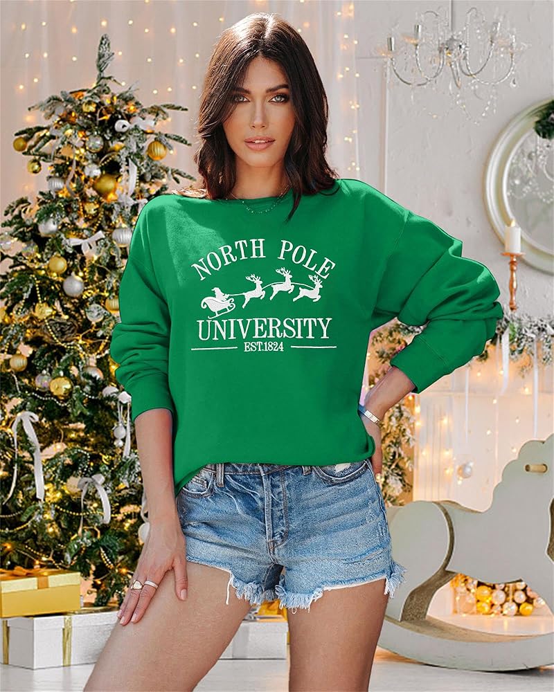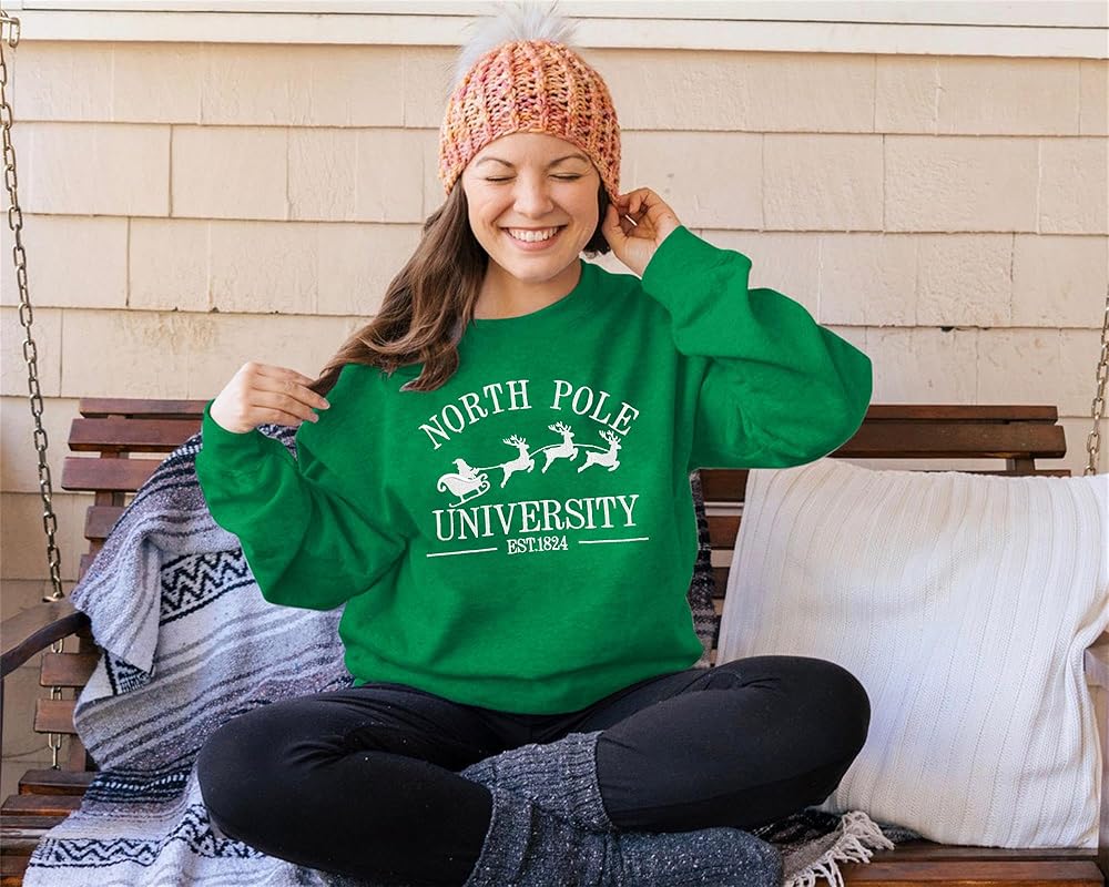 المزايا: سويت شيرت نسائي لعيد الميلاد، سويت شيرت نسائي لعيد الميلاد، سويت شيرت لعيد الميلاد من جامعة North Pole، سويت شيرت نسائي برقبة دائرية لعيد الميلاد، هودي مرح ومشرق، قميص مضحك لحفلات عيد الميلاد، قمصان مطرزة لطيفة لعيد الميلاد، سويت شيرت نسائي برقبة دائرية لعيد الميلاد.