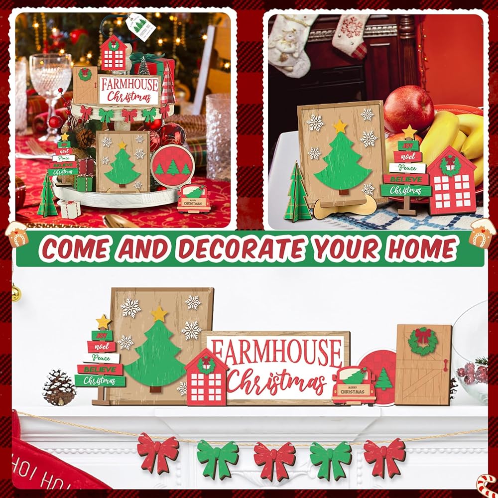 Not only can Xmas tiered tray decorations set be applied to decorate tiered trays, but we also provide you with hemp ropes, you can hang them where you want to decorate.